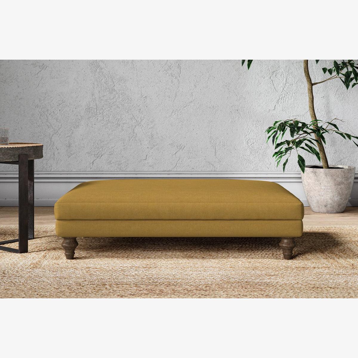 Our Marri large footstool is comfortable and stylish. It makes the perfect accompaniment to our Marri collection of armchairs and sofas, providing additional seating and a stylish footrest. The well-proportioned piece also works perfectly as an ottoman-style coffee table. Our handmade sofa collections celebrate the best of British quality in timeless designs that bring effortless style to an interior. We’ve considered every detail to ensure your made to order furniture provides comfort, longevity, and style. Handcrafted by specialists in our Nottinghamshire workshop, each piece is handmade to order using traditional techniques with exceptional craftmanship. Our upholstery fabrics are chosen for their style and quality, where all fabrics are FR treated for domestic upholstery ensuring peace of mind as well as meeting specialist UK furniture requirements. Our curated colour palette offers a variety of sophisticated muted shades. Please note, our white background cut-out photography is shown in Natural for shape and style reference. Fabric Swatch Ordering We recommend ordering fabric swatches before placing your order, giving you the chance to feel the fabric and see your colour choices within your own home. You can order up to 6 free fabric swatches by clicking here. Will it fit? Before placing your order, it's important to take the time to measure the space you intend to place your made-to-order furniture to ensure it fits properly. You can read more in our You can read more in our Sofa Buying Guide.