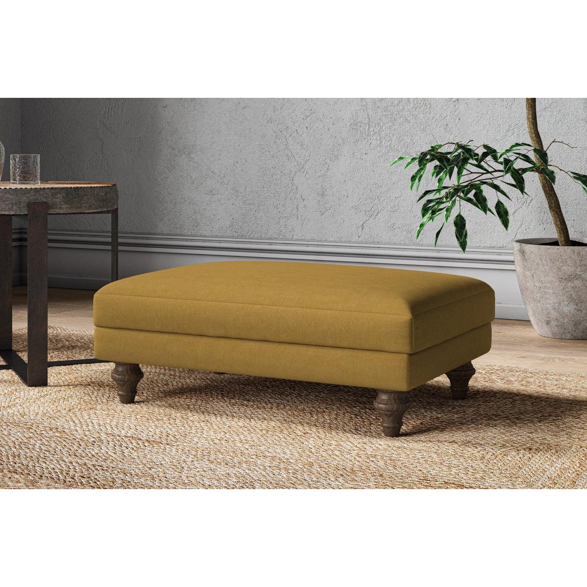 Our Marri medium footstool is comfortable and stylish. It makes the perfect accompaniment to our Marri collection of armchairs and sofas, providing additional seating and a stylish footrest. The well-proportioned piece also works perfectly as an ottoman-style coffee table. Our handmade sofa collections celebrate the best of British quality in timeless designs that bring effortless style to an interior. We’ve considered every detail to ensure your made to order furniture provides comfort, longevity, and style. Handcrafted by specialists in our Nottinghamshire workshop, each piece is handmade to order using traditional techniques with exceptional craftmanship. Our upholstery fabrics are chosen for their style and quality, where all fabrics are FR treated for domestic upholstery ensuring peace of mind as well as meeting specialist UK furniture requirements. Our curated colour palette offers a variety of sophisticated muted shades. Please note, our white background cut-out photography is shown in Natural for shape and style reference. Fabric Swatch Ordering We recommend ordering fabric swatches before placing your order, giving you the chance to feel the fabric and see your colour choices within your own home. You can order up to 6 free fabric swatches by clicking here. Will it fit? Before placing your order, it's important to take the time to measure the space you intend to place your made-to-order furniture to ensure it fits properly. You can read more in our You can read more in our Sofa Buying Guide.