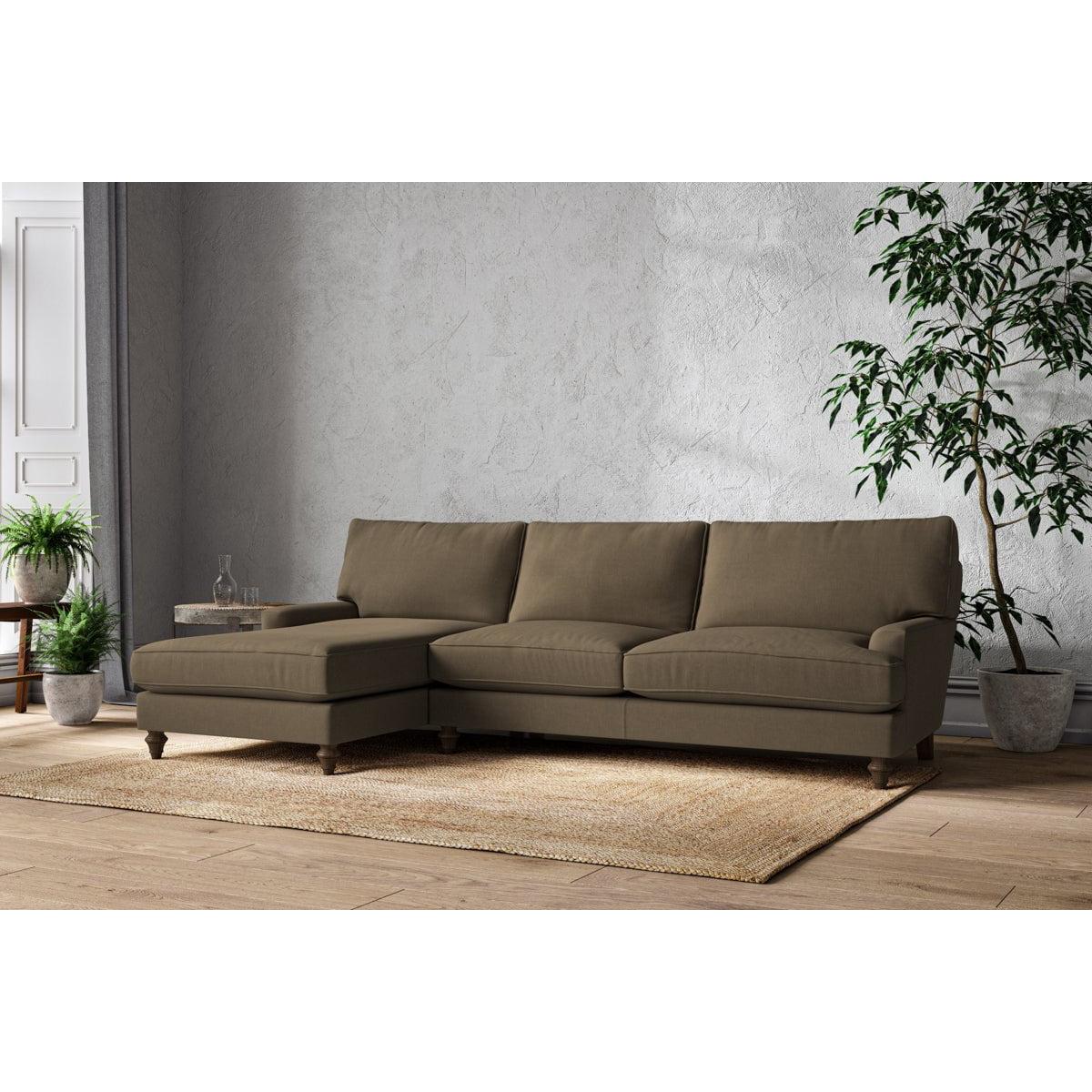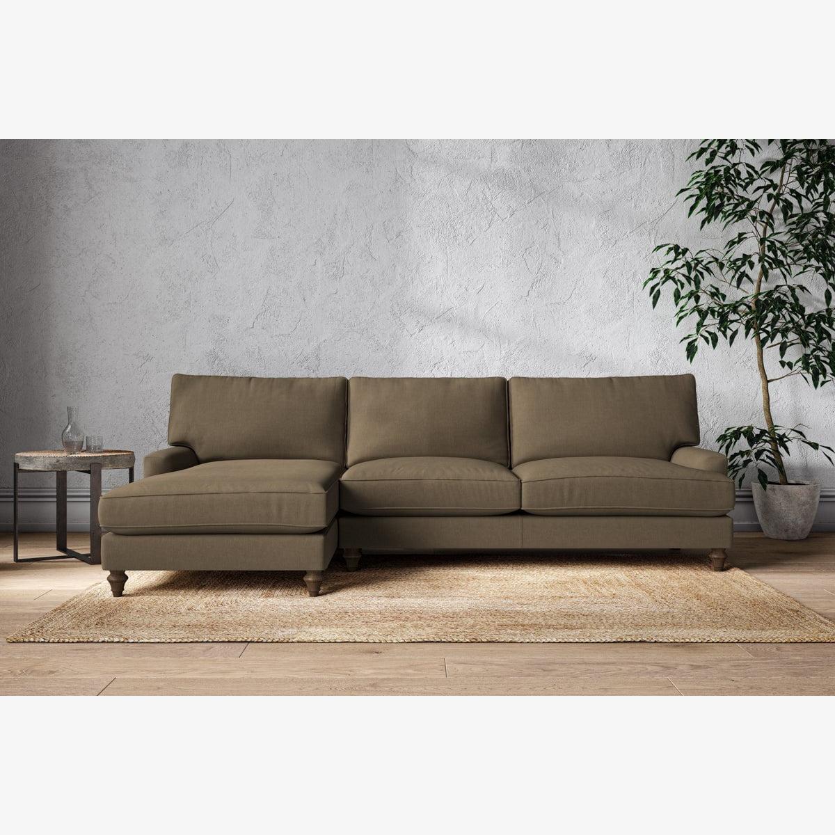 The classic design of our Marri grand left hand chaise sofa has a timeless appeal that suits almost any interior. Each piece is handcrafted by our specialist team in our Nottinghamshire workshop combining traditional techniques with exceptional craftmanship. Well-considered details ensure lasting quality, including piped edging, separate back cushions, and hand-turned hardwood feet. The hardwood frame and high-grade steel serpentine springs are selected for enduring quality, and the cushions are made from foam with a fibre wrap for added comfort. The fabric is hand cut to size, playing close attention to the characteristics of the material, and the sculpted hardwood feet provides the finishing detail. Our upholstery fabrics are sourced from Italy’s finest mills and are chosen for their style and quality. We have selected a beautiful heavyweight, soft washed linen with an outstanding texture. Our linen is perfectly suited to upholstery, with an appealing natural, and tactile feel. It is also heavy and durable. The linen is FR treated for domestic upholstery ensuring peace of mind as well as meeting specialist UK furniture requirements. Please note, our white background cut-out photography is shown in Natural for shape and style reference. Fabric Swatch Ordering We recommend ordering fabric swatches before placing your order, giving you the chance to feel the fabric and see your colour choices within your own home. You can order up to 6 free fabric swatches by clicking here. Before placing your order, it's important to take the time to measure the space you intend to place your made-to-order furniture to ensure it fits properly. You can read more in our Sofa Buying Guide.