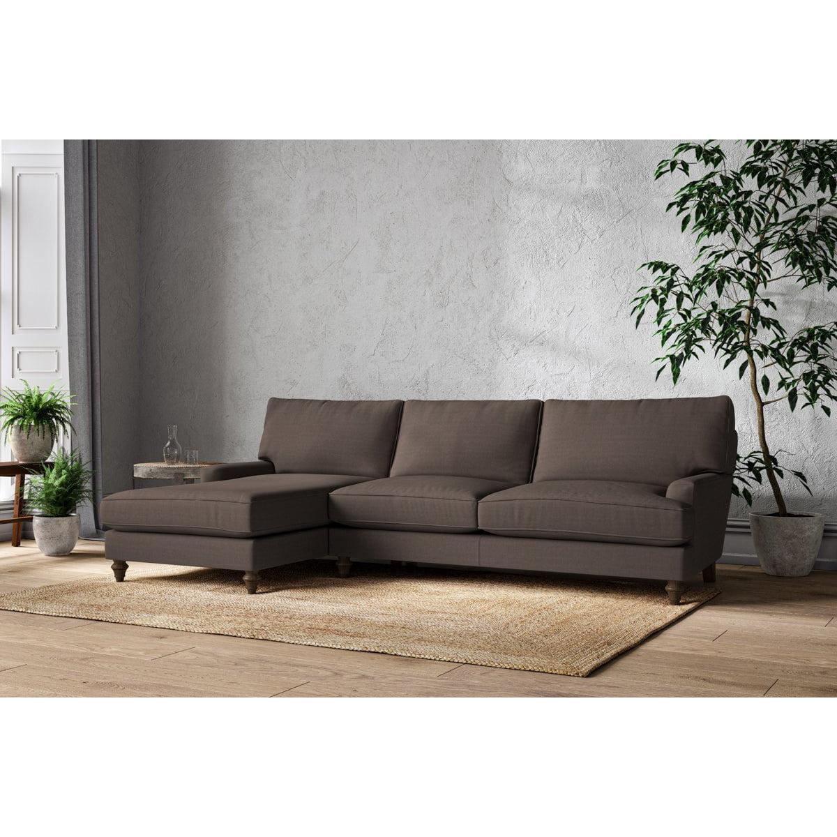 The classic design of our Marri grand left hand chaise sofa has a timeless appeal that suits almost any interior. Each piece is handcrafted by our specialist team in our Nottinghamshire workshop combining traditional techniques with exceptional craftmanship. Well-considered details ensure lasting quality, including piped edging, separate back cushions, and hand-turned hardwood feet. The hardwood frame and high-grade steel serpentine springs are selected for enduring quality, and the cushions are made from foam with a fibre wrap for added comfort. The fabric is hand cut to size, playing close attention to the characteristics of the material, and the sculpted hardwood feet provides the finishing detail. Our upholstery fabrics are chosen for their style and quality, where all fabrics are FR treated for domestic upholstery ensuring peace of mind as well as meeting specialist UK furniture requirements. Our curated colour palette offers a variety of sophisticated muted shades. Please note, our white background cut-out photography is shown in Natural for shape and style reference. Fabric Swatch Ordering We recommend ordering fabric swatches before placing your order, giving you the chance to feel the fabric and see your colour choices within your own home. You can order up to 6 free fabric swatches by clicking here. Before placing your order, it's important to take the time to measure the space you intend to place your made-to-order furniture to ensure it fits properly. You can read more in our Sofa Buying Guide.