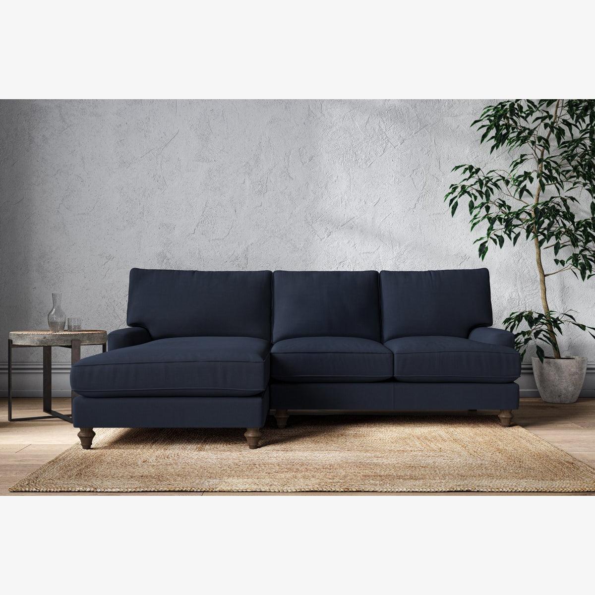 Nkuku Marri Left Hand Chaise Sofa | Make To Order | Large | Brera Linen Indigo
