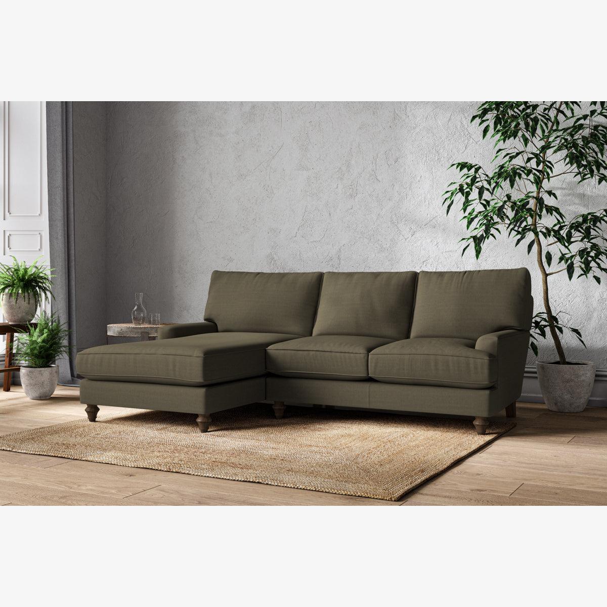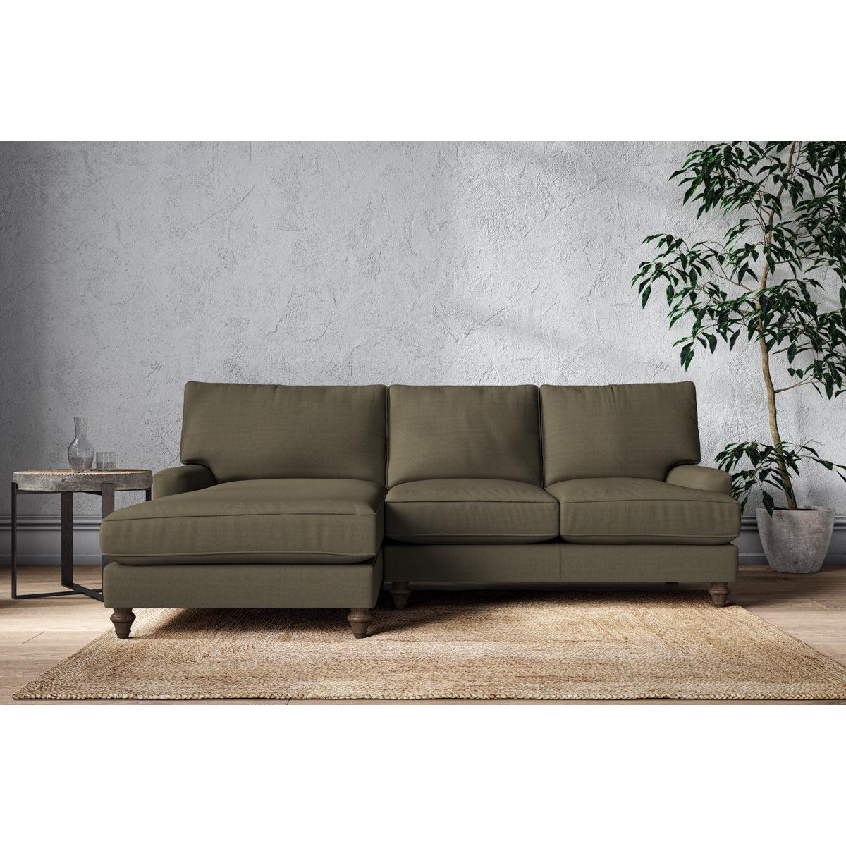 The classic design of our Marri large left hand chaise sofa has a timeless appeal that suits almost any interior. Each piece is handcrafted by our specialist team in our Nottinghamshire workshop combining traditional techniques with exceptional craftmanship. Well-considered details ensure lasting quality, including piped edging, separate back cushions, and hand-turned hardwood feet. The hardwood frame and high-grade steel serpentine springs are selected for enduring quality, and the cushions are made from foam with a fibre wrap for added comfort. The fabric is hand cut to size, playing close attention to the characteristics of the material, and the sculpted hardwood feet provides the finishing detail. Our upholstery fabrics are chosen for their style and quality, where all fabrics are FR treated for domestic upholstery ensuring peace of mind as well as meeting specialist UK furniture requirements. Our curated colour palette offers a variety of sophisticated muted shades. Please note, our white background cut-out photography is shown in Natural for shape and style reference. Fabric Swatch Ordering We recommend ordering fabric swatches before placing your order, giving you the chance to feel the fabric and see your colour choices within your own home. You can order up to 6 free fabric swatches by clicking here. Before placing your order, it's important to take the time to measure the space you intend to place your made-to-order furniture to ensure it fits properly. You can read more in our Sofa Buying Guide.