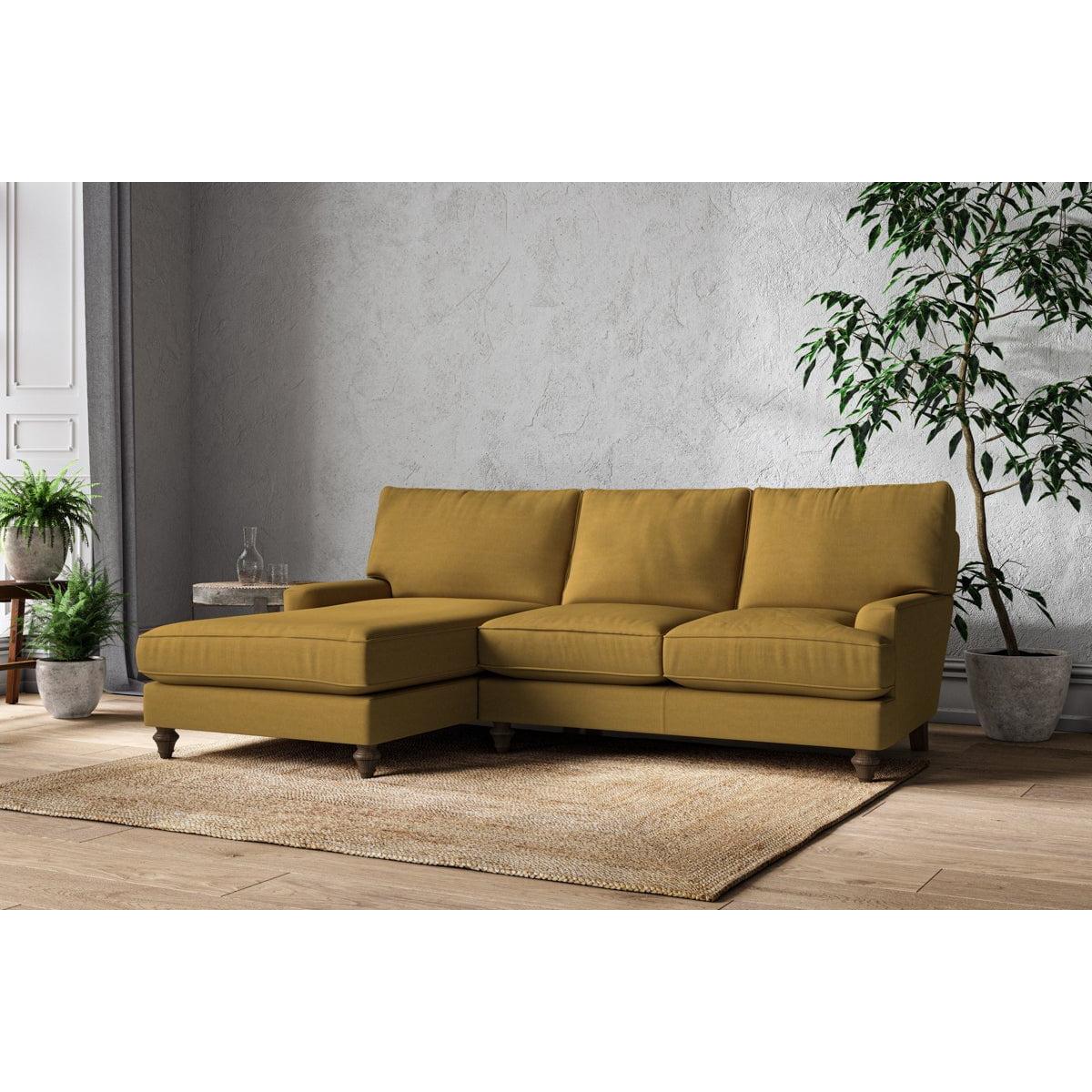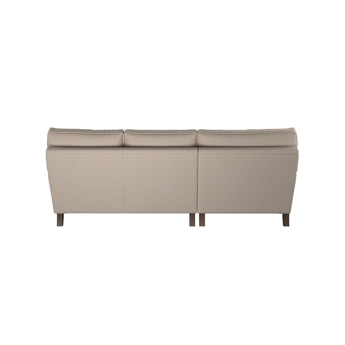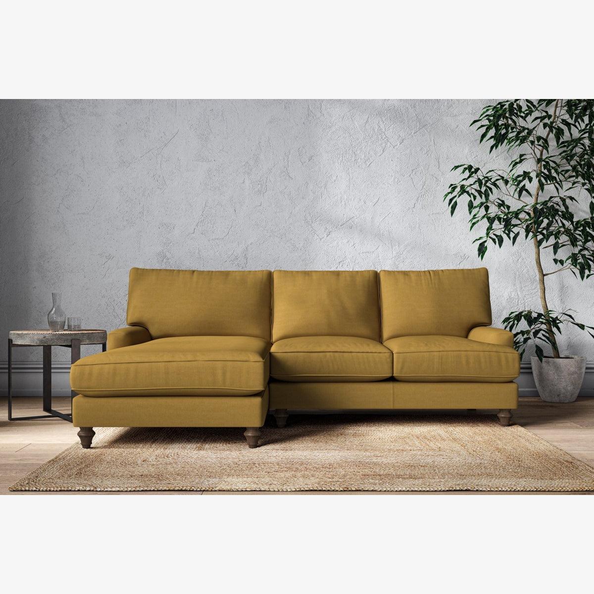 The classic design of our Marri large left hand chaise sofa has a timeless appeal that suits almost any interior. Each piece is handcrafted by our specialist team in our Nottinghamshire workshop combining traditional techniques with exceptional craftmanship. Well-considered details ensure lasting quality, including piped edging, separate back cushions, and hand-turned hardwood feet. The hardwood frame and high-grade steel serpentine springs are selected for enduring quality, and the cushions are made from foam with a fibre wrap for added comfort. The fabric is hand cut to size, playing close attention to the characteristics of the material, and the sculpted hardwood feet provides the finishing detail. Our upholstery fabrics are chosen for their style and quality, where all fabrics are FR treated for domestic upholstery ensuring peace of mind as well as meeting specialist UK furniture requirements. Our curated colour palette offers a variety of sophisticated muted shades. Please note, our white background cut-out photography is shown in Natural for shape and style reference. Fabric Swatch Ordering We recommend ordering fabric swatches before placing your order, giving you the chance to feel the fabric and see your colour choices within your own home. You can order up to 6 free fabric swatches by clicking here. Before placing your order, it's important to take the time to measure the space you intend to place your made-to-order furniture to ensure it fits properly. You can read more in our Sofa Buying Guide.