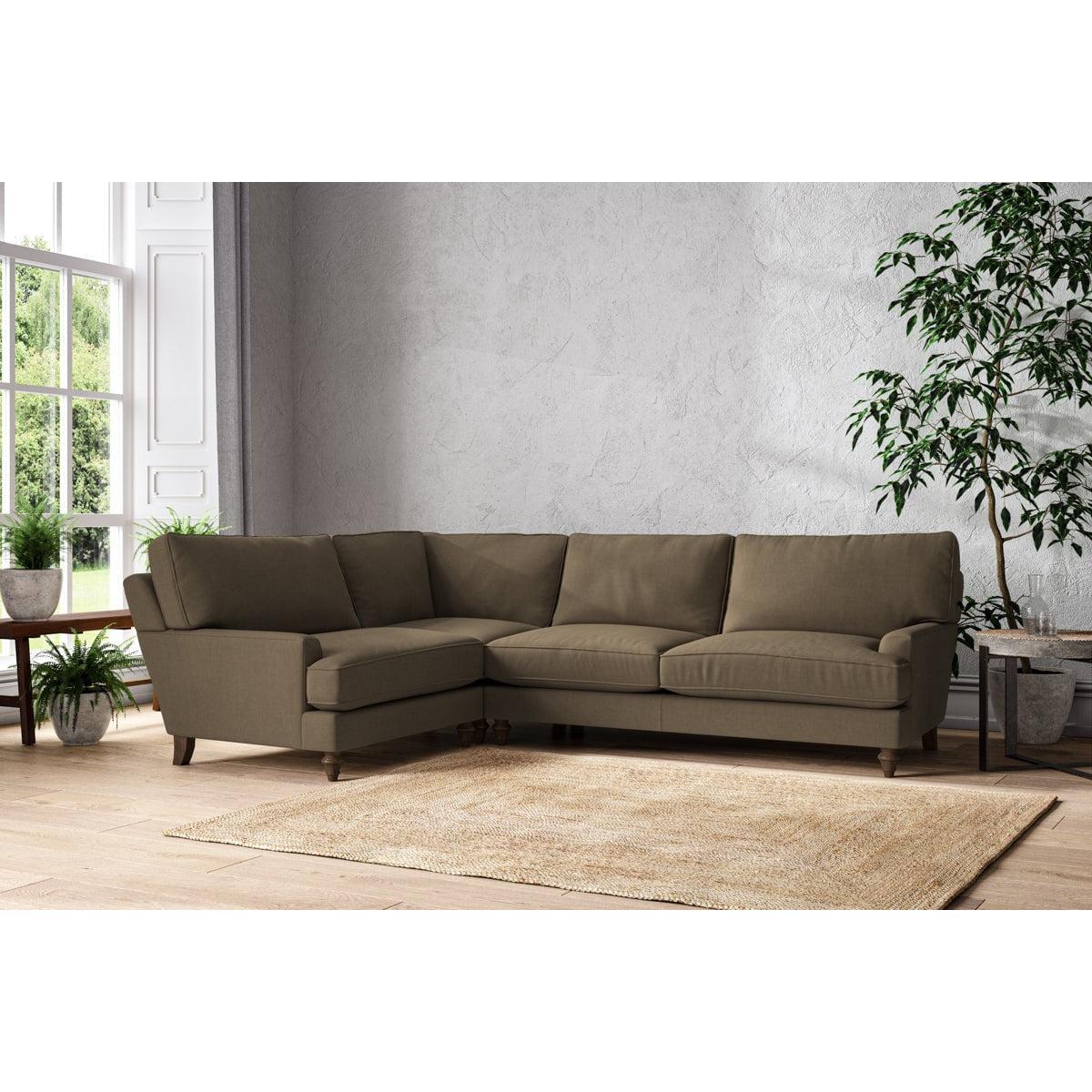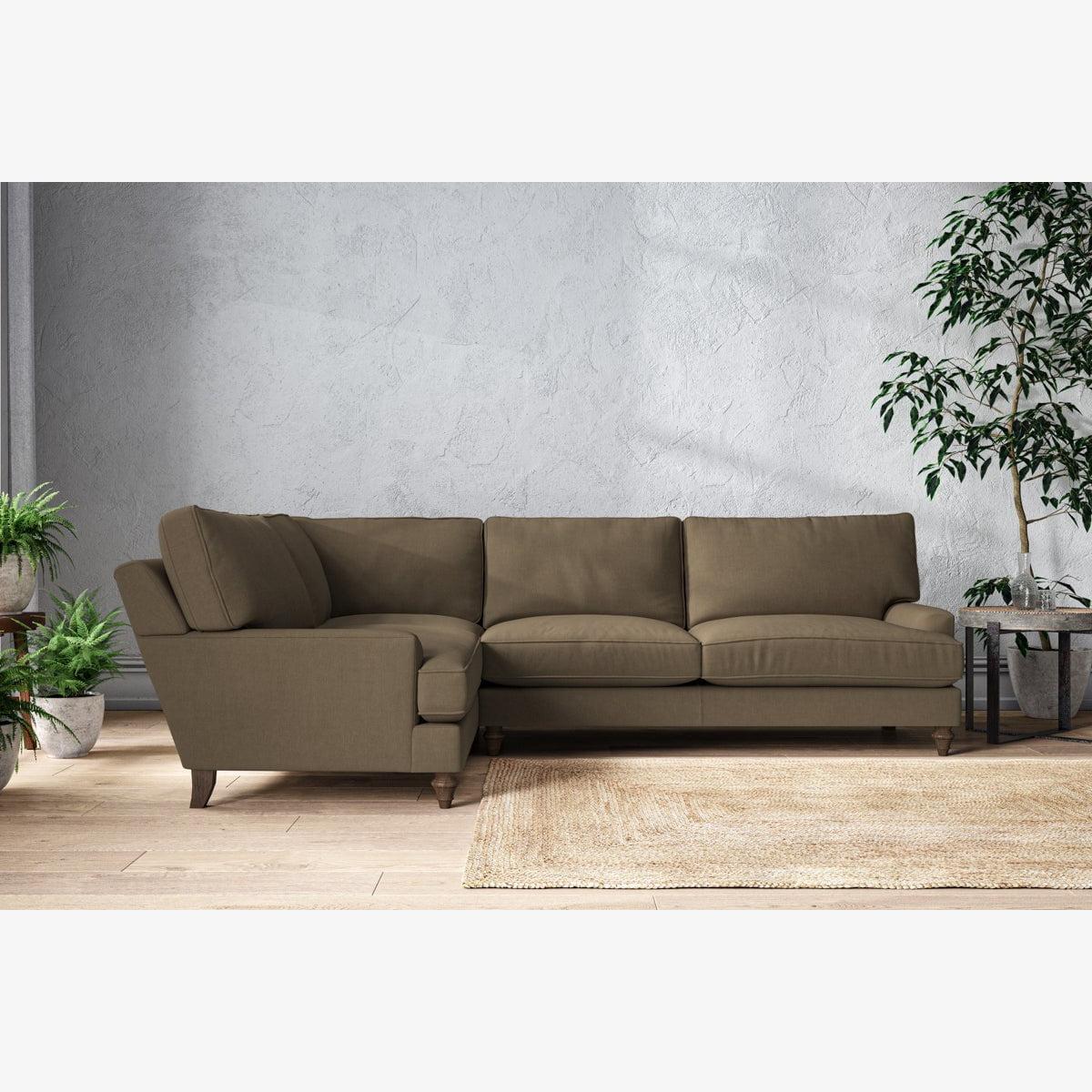 The classic design of our Marri grand left hand corner sofa has a timeless appeal that suits almost any interior. Each piece is handcrafted by our specialist team in our Nottinghamshire workshop combining traditional techniques with exceptional craftmanship. Well-considered details ensure lasting quality, including piped edging, separate back cushions, and hand-turned hardwood feet. The hardwood frame and high-grade steel serpentine springs are selected for enduring quality, and the cushions are made from foam with a fibre wrap for added comfort. The fabric is hand cut to size, playing close attention to the characteristics of the material, and the sculpted hardwood feet provides the finishing detail. Our upholstery fabrics are sourced from Italy’s finest mills and are chosen for their style and quality. We have selected a beautiful heavyweight, soft washed linen with an outstanding texture. Our linen is perfectly suited to upholstery, with an appealing natural, and tactile feel. It is also heavy and durable. The linen is FR treated for domestic upholstery ensuring peace of mind as well as meeting specialist UK furniture requirements. Please note, our white background cut-out photography is shown in Natural for shape and style reference. Fabric Swatch Ordering We recommend ordering fabric swatches before placing your order, giving you the chance to feel the fabric and see your colour choices within your own home. You can order up to 6 free fabric swatches by clicking here. Before placing your order, it's important to take the time to measure the space you intend to place your made-to-order furniture to ensure it fits properly. You can read more in our Sofa Buying Guide.