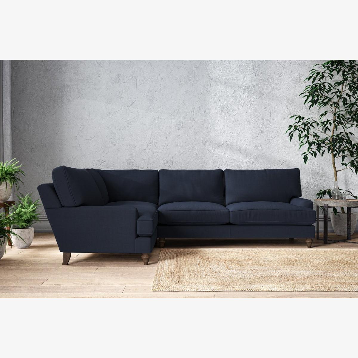 The classic design of our Marri grand left hand corner sofa has a timeless appeal that suits almost any interior. Each piece is handcrafted by our specialist team in our Nottinghamshire workshop combining traditional techniques with exceptional craftmanship. Well-considered details ensure lasting quality, including piped edging, separate back cushions, and hand-turned hardwood feet. The hardwood frame and high-grade steel serpentine springs are selected for enduring quality, and the cushions are made from foam with a fibre wrap for added comfort. The fabric is hand cut to size, playing close attention to the characteristics of the material, and the sculpted hardwood feet provides the finishing detail. Our upholstery fabrics are sourced from Italy’s finest mills and are chosen for their style and quality. We have selected a beautiful heavyweight, soft washed linen with an outstanding texture. Our linen is perfectly suited to upholstery, with an appealing natural, and tactile feel. It is also heavy and durable. The linen is FR treated for domestic upholstery ensuring peace of mind as well as meeting specialist UK furniture requirements. Please note, our white background cut-out photography is shown in Natural for shape and style reference. Fabric Swatch Ordering We recommend ordering fabric swatches before placing your order, giving you the chance to feel the fabric and see your colour choices within your own home. You can order up to 6 free fabric swatches by clicking here. Before placing your order, it's important to take the time to measure the space you intend to place your made-to-order furniture to ensure it fits properly. You can read more in our Sofa Buying Guide.