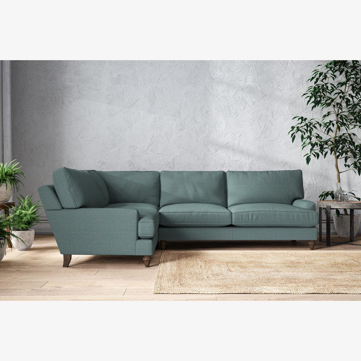 The classic design of our Marri grand left hand corner sofa has a timeless appeal that suits almost any interior. Each piece is handcrafted by our specialist team in our Nottinghamshire workshop combining traditional techniques with exceptional craftmanship. Well-considered details ensure lasting quality, including piped edging, separate back cushions, and hand-turned hardwood feet. The hardwood frame and high-grade steel serpentine springs are selected for enduring quality, and the cushions are made from foam with a fibre wrap for added comfort. The fabric is hand cut to size, playing close attention to the characteristics of the material, and the sculpted hardwood feet provides the finishing detail. Our upholstery fabrics are chosen for their style and quality, where all fabrics are FR treated for domestic upholstery ensuring peace of mind as well as meeting specialist UK furniture requirements. Our curated colour palette offers a variety of sophisticated muted shades. Please note, our white background cut-out photography is shown in Natural for shape and style reference. Fabric Swatch Ordering We recommend ordering fabric swatches before placing your order, giving you the chance to feel the fabric and see your colour choices within your own home. You can order up to 6 free fabric swatches by clicking here. Before placing your order, it's important to take the time to measure the space you intend to place your made-to-order furniture to ensure it fits properly. You can read more in our Sofa Buying Guide.