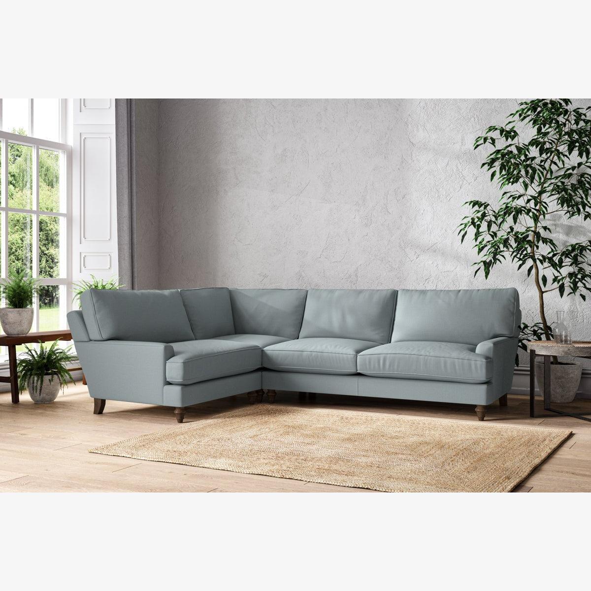 The classic design of our Marri grand left hand corner sofa has a timeless appeal that suits almost any interior. Each piece is handcrafted by our specialist team in our Nottinghamshire workshop combining traditional techniques with exceptional craftmanship. Well-considered details ensure lasting quality, including piped edging, separate back cushions, and hand-turned hardwood feet. The hardwood frame and high-grade steel serpentine springs are selected for enduring quality, and the cushions are made from foam with a fibre wrap for added comfort. The fabric is hand cut to size, playing close attention to the characteristics of the material, and the sculpted hardwood feet provides the finishing detail. Our upholstery fabrics are chosen for their style and quality, where all fabrics are FR treated for domestic upholstery ensuring peace of mind as well as meeting specialist UK furniture requirements. Our curated colour palette offers a variety of sophisticated muted shades. Please note, our white background cut-out photography is shown in Natural for shape and style reference. Fabric Swatch Ordering We recommend ordering fabric swatches before placing your order, giving you the chance to feel the fabric and see your colour choices within your own home. You can order up to 6 free fabric swatches by clicking here. Before placing your order, it's important to take the time to measure the space you intend to place your made-to-order furniture to ensure it fits properly. You can read more in our Sofa Buying Guide.