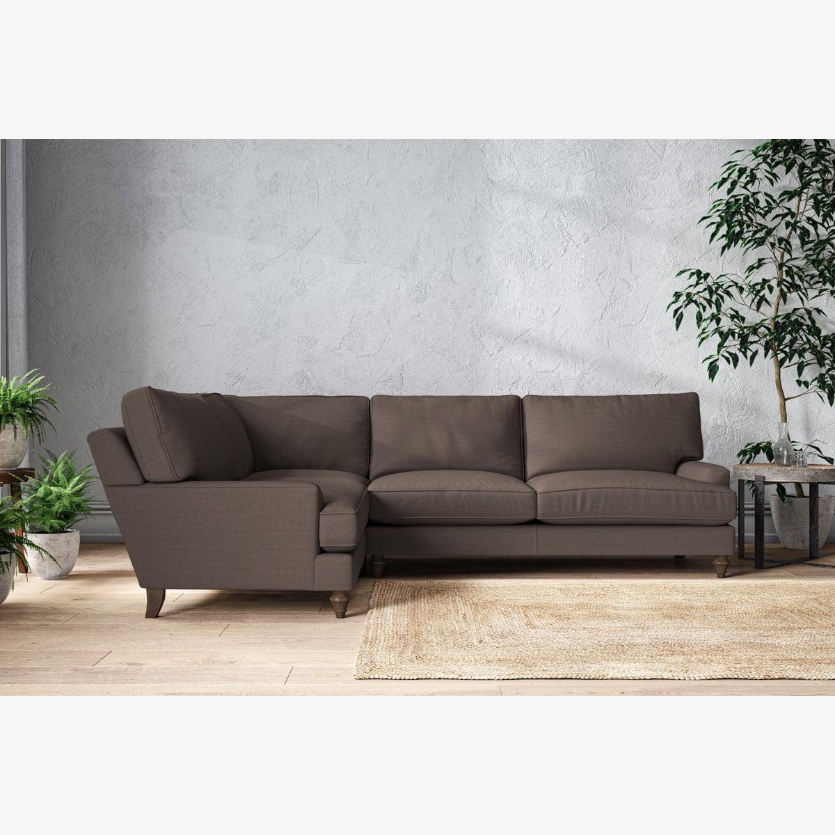 The classic design of our Marri grand left hand corner sofa has a timeless appeal that suits almost any interior. Each piece is handcrafted by our specialist team in our Nottinghamshire workshop combining traditional techniques with exceptional craftmanship. Well-considered details ensure lasting quality, including piped edging, separate back cushions, and hand-turned hardwood feet. The hardwood frame and high-grade steel serpentine springs are selected for enduring quality, and the cushions are made from foam with a fibre wrap for added comfort. The fabric is hand cut to size, playing close attention to the characteristics of the material, and the sculpted hardwood feet provides the finishing detail. Our upholstery fabrics are chosen for their style and quality, where all fabrics are FR treated for domestic upholstery ensuring peace of mind as well as meeting specialist UK furniture requirements. Our curated colour palette offers a variety of sophisticated muted shades. Please note, our white background cut-out photography is shown in Natural for shape and style reference. Fabric Swatch Ordering We recommend ordering fabric swatches before placing your order, giving you the chance to feel the fabric and see your colour choices within your own home. You can order up to 6 free fabric swatches by clicking here. Before placing your order, it's important to take the time to measure the space you intend to place your made-to-order furniture to ensure it fits properly. You can read more in our Sofa Buying Guide.