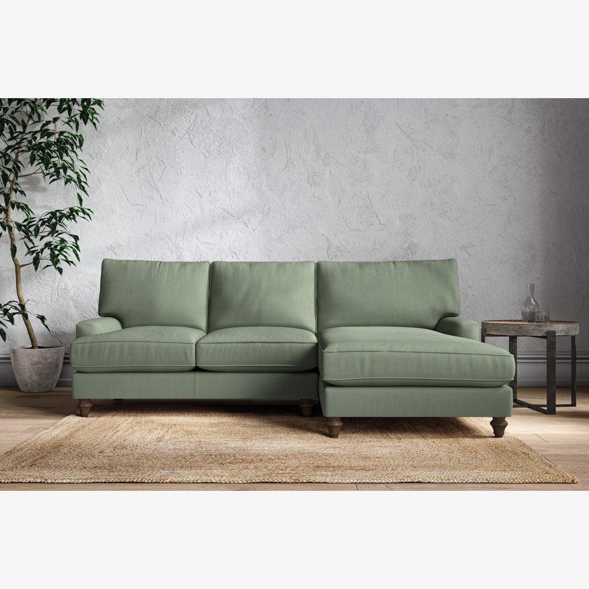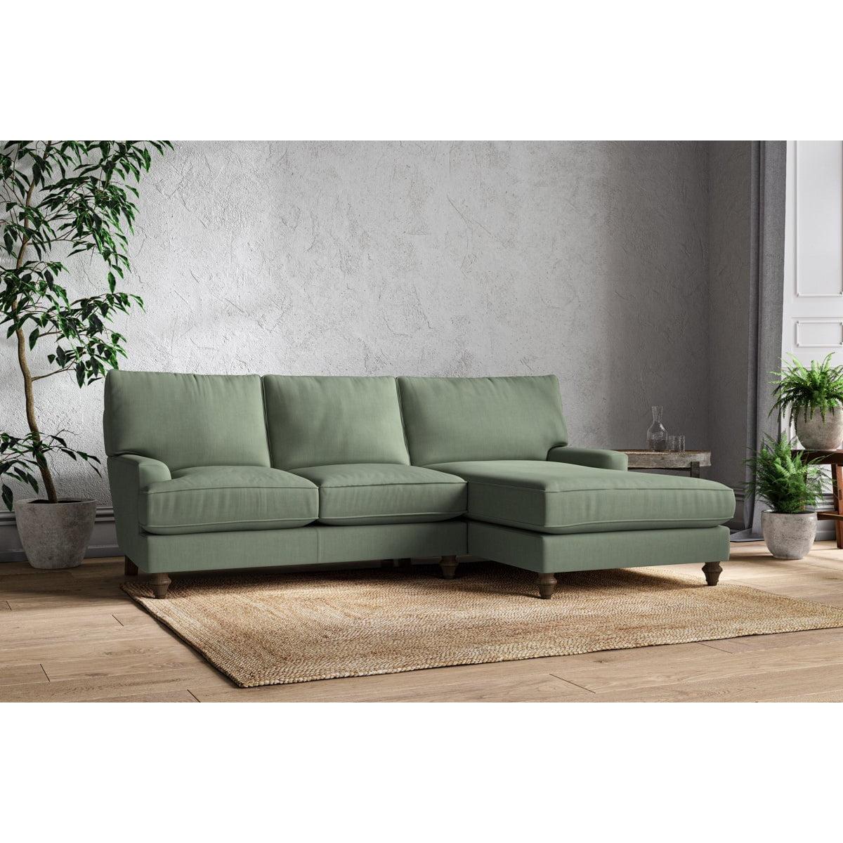 The classic design of our Marri large right hand chaise sofa has a timeless appeal that suits almost any interior. Each piece is handcrafted by our specialist team in our Nottinghamshire workshop combining traditional techniques with exceptional craftmanship. Well-considered details ensure lasting quality, including piped edging, separate back cushions, and hand-turned hardwood feet. The hardwood frame and high-grade steel serpentine springs are selected for enduring quality, and the cushions are made from foam with a fibre wrap for added comfort. The fabric is hand cut to size, playing close attention to the characteristics of the material, and the sculpted hardwood feet provides the finishing detail. Our upholstery fabrics are sourced from Italy’s finest mills and are chosen for their style and quality. We have selected a beautiful heavyweight, soft washed linen with an outstanding texture. Our linen is perfectly suited to upholstery, with an appealing natural, and tactile feel. It is also heavy and durable. The linen is FR treated for domestic upholstery ensuring peace of mind as well as meeting specialist UK furniture requirements. Please note, our white background cut-out photography is shown in Natural for shape and style reference. Fabric Swatch Ordering We recommend ordering fabric swatches before placing your order, giving you the chance to feel the fabric and see your colour choices within your own home. You can order up to 6 free fabric swatches by clicking here. Before placing your order, it's important to take the time to measure the space you intend to place your made-to-order furniture to ensure it fits properly. You can read more in our Sofa Buying Guide.