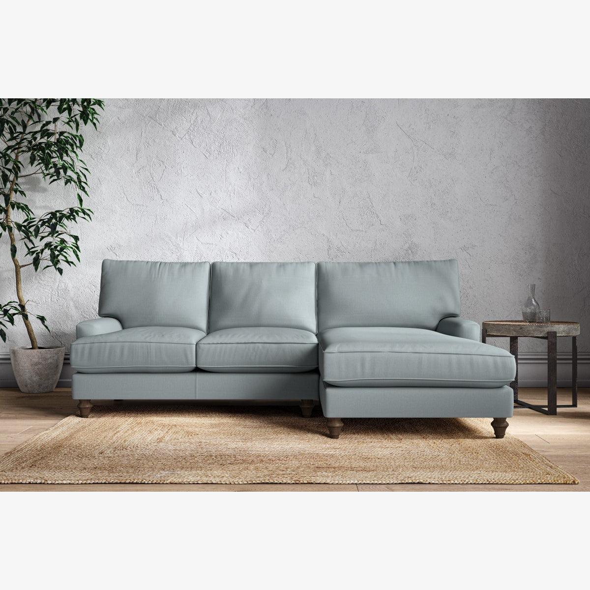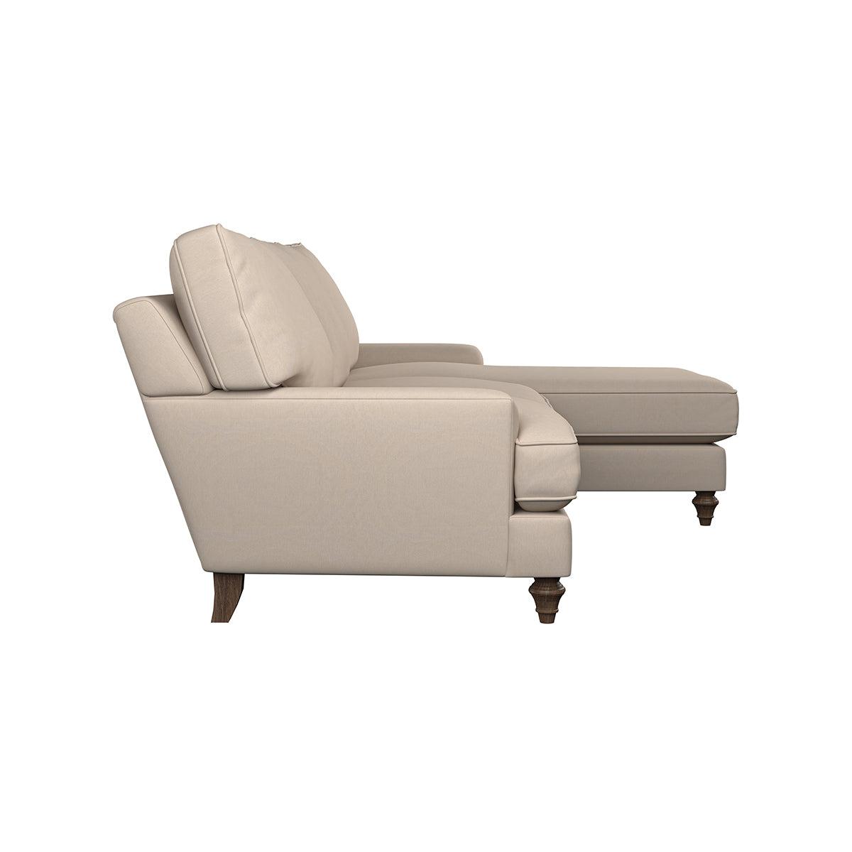 The classic design of our Marri large right hand chaise sofa has a timeless appeal that suits almost any interior. Each piece is handcrafted by our specialist team in our Nottinghamshire workshop combining traditional techniques with exceptional craftmanship. Well-considered details ensure lasting quality, including piped edging, separate back cushions, and hand-turned hardwood feet. The hardwood frame and high-grade steel serpentine springs are selected for enduring quality, and the cushions are made from foam with a fibre wrap for added comfort. The fabric is hand cut to size, playing close attention to the characteristics of the material, and the sculpted hardwood feet provides the finishing detail. Our upholstery fabrics are chosen for their style and quality, where all fabrics are FR treated for domestic upholstery ensuring peace of mind as well as meeting specialist UK furniture requirements. Our curated colour palette offers a variety of sophisticated muted shades. Please note, our white background cut-out photography is shown in Natural for shape and style reference. Fabric Swatch Ordering We recommend ordering fabric swatches before placing your order, giving you the chance to feel the fabric and see your colour choices within your own home. You can order up to 6 free fabric swatches by clicking here. Before placing your order, it's important to take the time to measure the space you intend to place your made-to-order furniture to ensure it fits properly. You can read more in our Sofa Buying Guide.