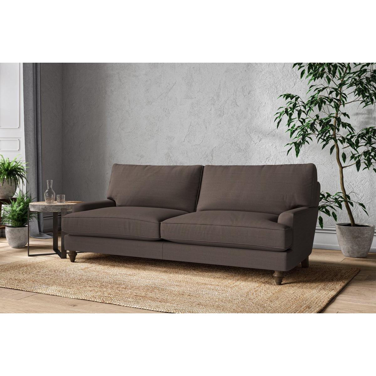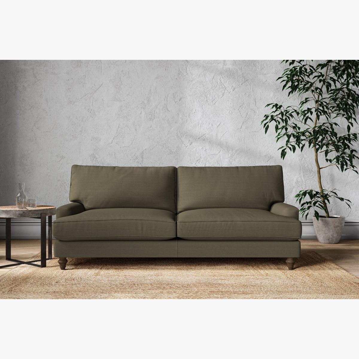 The classic shape of our Marri grand sofa has a timeless appeal that suits almost any interior. Each piece is handcrafted by our specialist team in our Nottinghamshire workshop combining traditional techniques with exceptional craftmanship. Well-considered details ensure lasting quality, including piped edging, separate back cushions, and hand-turned hardwood feet. The hardwood frame and high-grade steel serpentine springs are selected for enduring quality, and the cushions are made from foam with a fibre wrap for added comfort. The fabric is hand cut to size, playing close attention to the characteristics of the material, and the sculpted hardwood feet provides the finishing detail. Our upholstery fabrics are chosen for their style and quality, where all fabrics are FR treated for domestic upholstery ensuring peace of mind as well as meeting specialist UK furniture requirements. Our curated colour palette offers a variety of sophisticated muted shades. Please note, our white background cut-out photography is shown in Natural for shape and style reference. Fabric Swatch Ordering We recommend ordering fabric swatches before placing your order, giving you the chance to feel the fabric and see your colour choices within your own home. You can order up to 6 free fabric swatches by clicking here. Before placing your order, it's important to take the time to measure the space you intend to place your made-to-order furniture to ensure it fits properly. You can read more in our Sofa Buying Guide.