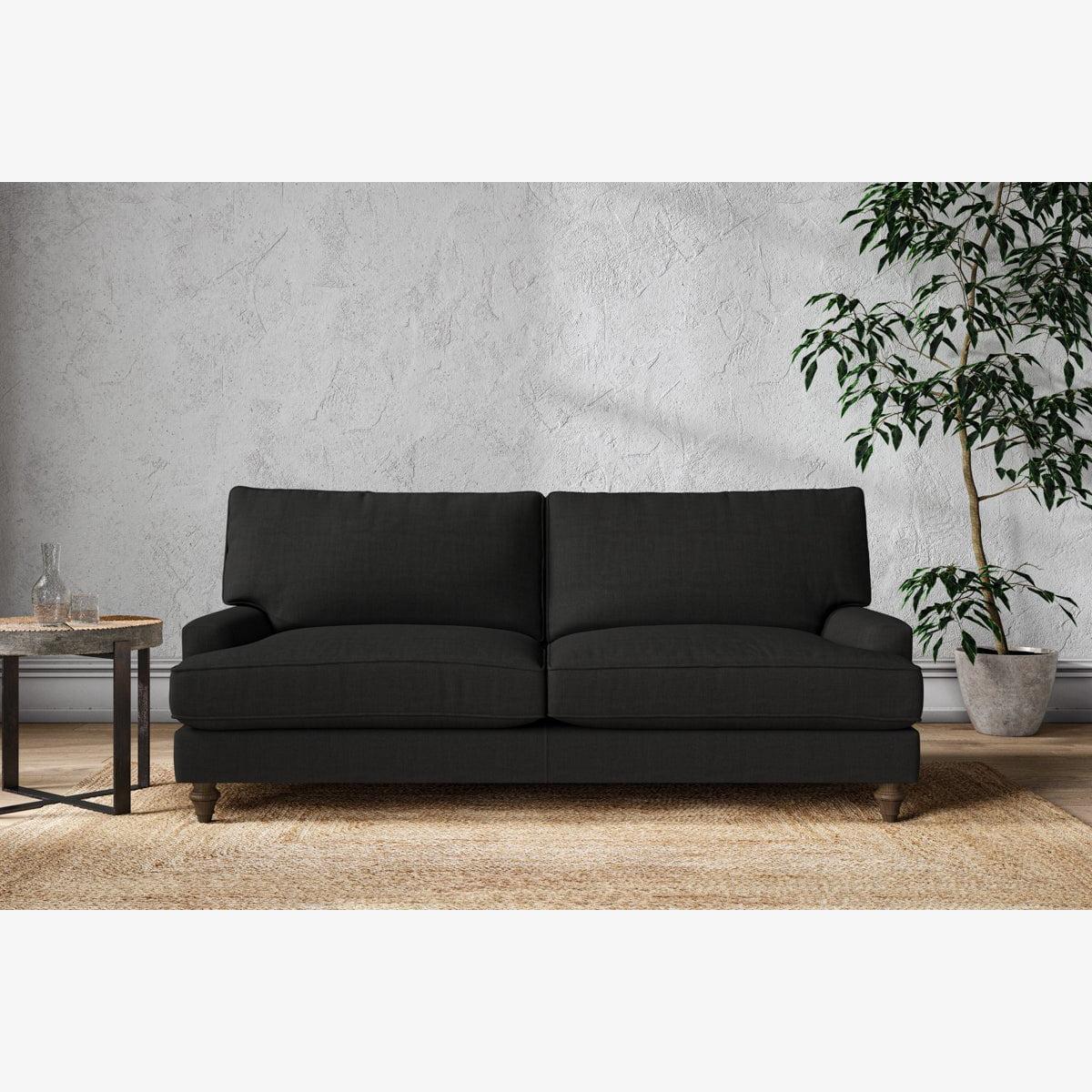 The classic shape of our Marri large sofa has a timeless appeal that suits almost any interior. Each piece is handcrafted by our specialist team in our Nottinghamshire workshop combining traditional techniques with exceptional craftmanship. Well-considered details ensure lasting quality, including piped edging, separate back cushions, and hand-turned hardwood feet. The hardwood frame and high-grade steel serpentine springs are selected for enduring quality, and the cushions are made from foam with a fibre wrap for added comfort. The fabric is hand cut to size, playing close attention to the characteristics of the material, and the sculpted hardwood feet provides the finishing detail. Our upholstery fabrics are sourced from Italy’s finest mills and are chosen for their style and quality. We have selected a beautiful heavyweight, soft washed linen with an outstanding texture. Our linen is perfectly suited to upholstery, with an appealing natural, and tactile feel. It is also heavy and durable. The linen is FR treated for domestic upholstery ensuring peace of mind as well as meeting specialist UK furniture requirements. Please note, our white background cut-out photography is shown in Natural for shape and style reference. Fabric Swatch Ordering We recommend ordering fabric swatches before placing your order, giving you the chance to feel the fabric and see your colour choices within your own home. You can order up to 6 free fabric swatches by clicking here. Before placing your order, it's important to take the time to measure the space you intend to place your made-to-order furniture to ensure it fits properly. You can read more in our Sofa Buying Guide.