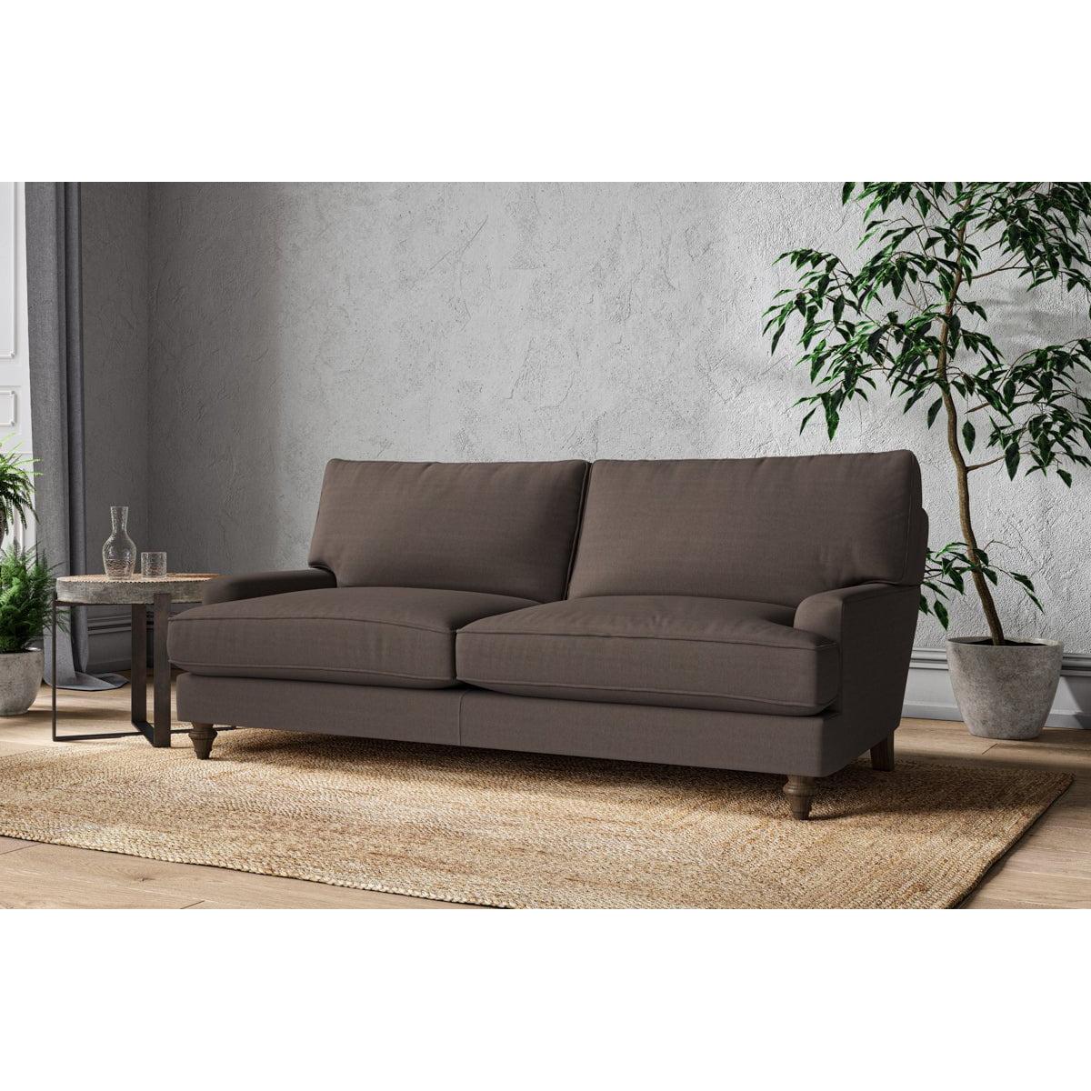 The classic shape of our Marri large sofa has a timeless appeal that suits almost any interior. Each piece is handcrafted by our specialist team in our Nottinghamshire workshop combining traditional techniques with exceptional craftmanship. Well-considered details ensure lasting quality, including piped edging, separate back cushions, and hand-turned hardwood feet. The hardwood frame and high-grade steel serpentine springs are selected for enduring quality, and the cushions are made from foam with a fibre wrap for added comfort. The fabric is hand cut to size, playing close attention to the characteristics of the material, and the sculpted hardwood feet provides the finishing detail. Our upholstery fabrics are chosen for their style and quality, where all fabrics are FR treated for domestic upholstery ensuring peace of mind as well as meeting specialist UK furniture requirements. Our curated colour palette offers a variety of sophisticated muted shades. Please note, our white background cut-out photography is shown in Natural for shape and style reference. Fabric Swatch Ordering We recommend ordering fabric swatches before placing your order, giving you the chance to feel the fabric and see your colour choices within your own home. You can order up to 6 free fabric swatches by clicking here. Before placing your order, it's important to take the time to measure the space you intend to place your made-to-order furniture to ensure it fits properly. You can read more in our Sofa Buying Guide.