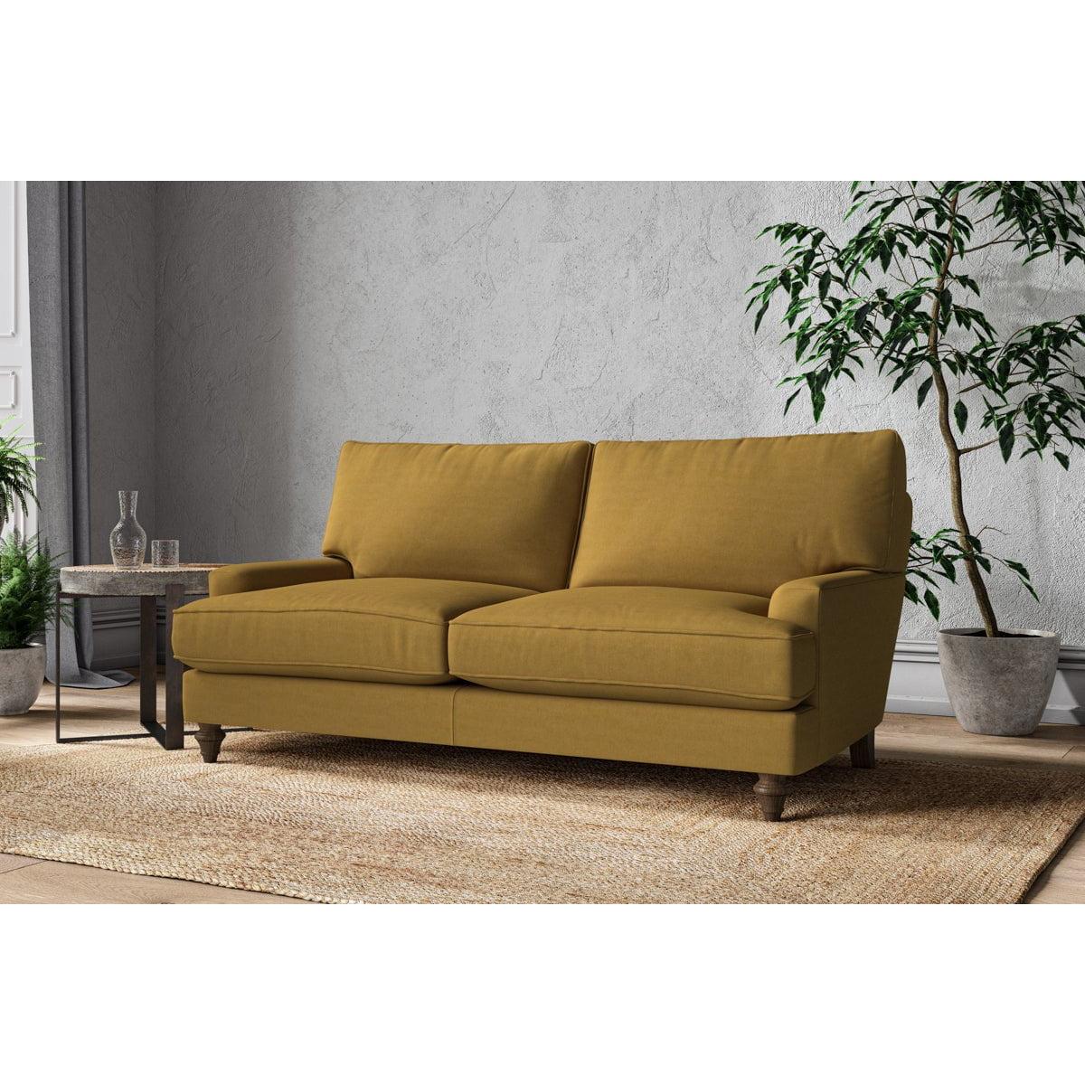 The classic shape of our Marri medium sofa has a timeless appeal that suits almost any interior. Each piece is handcrafted by our specialist team in our Nottinghamshire workshop combining traditional techniques with exceptional craftmanship. Well-considered details ensure lasting quality, including piped edging, separate back cushions, and hand-turned hardwood feet. The hardwood frame and high-grade steel serpentine springs are selected for enduring quality, and the cushions are made from foam with a fibre wrap for added comfort. The fabric is hand cut to size, playing close attention to the characteristics of the material, and the sculpted hardwood feet provides the finishing detail. Our upholstery fabrics are chosen for their style and quality, where all fabrics are FR treated for domestic upholstery ensuring peace of mind as well as meeting specialist UK furniture requirements. Our curated colour palette offers a variety of sophisticated muted shades. Fabric Swatch Ordering We recommend ordering fabric swatches before placing your order, giving you the chance to feel the fabric and see your colour choices within your own home. You can order up to 6 free fabric swatches by clicking here. Before placing your order, it's important to take the time to measure the space you intend to place your made-to-order furniture to ensure it fits properly. You can read more in our Sofa Buying Guide.