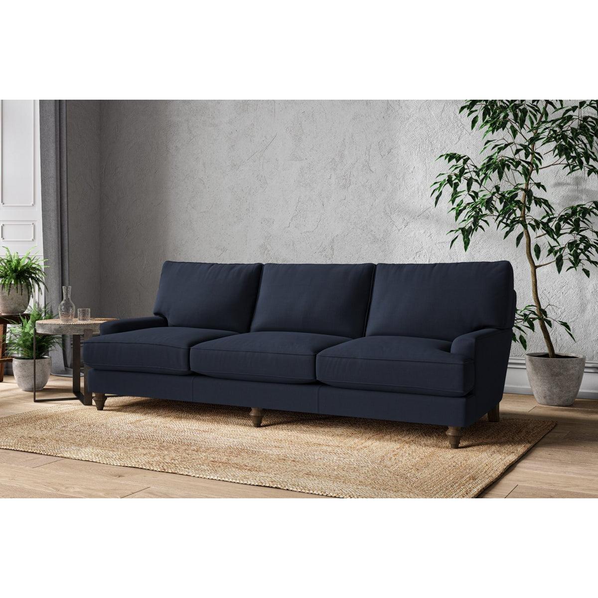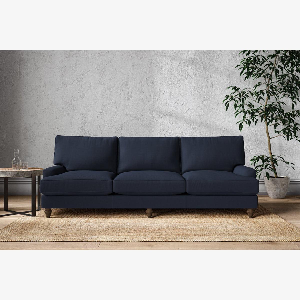 The classic shape of our Marri super grand sofa has a timeless appeal that suits almost any interior. Each piece is handcrafted by our specialist team in our Nottinghamshire workshop combining traditional techniques with exceptional craftmanship. Well-considered details ensure lasting quality, including piped edging, separate back cushions, and hand-turned hardwood feet. The hardwood frame and high-grade steel serpentine springs are selected for enduring quality, and the cushions are made from foam with a fibre wrap for added comfort. The fabric is hand cut to size, playing close attention to the characteristics of the material, and the sculpted hardwood feet provides the finishing detail. Our upholstery fabrics are sourced from Italy’s finest mills and are chosen for their style and quality. We have selected a beautiful heavyweight, soft washed linen with an outstanding texture. Our linen is perfectly suited to upholstery, with an appealing natural, and tactile feel. It is also heavy and durable. The linen is FR treated for domestic upholstery ensuring peace of mind as well as meeting specialist UK furniture requirements. Please note, our white background cut-out photography is shown in Natural for shape and style reference. Fabric Swatch Ordering We recommend ordering fabric swatches before placing your order, giving you the chance to feel the fabric and see your colour choices within your own home. You can order up to 6 free fabric swatches by clicking here. Before placing your order, it's important to take the time to measure the space you intend to place your made-to-order furniture to ensure it fits properly. You can read more in our Sofa Buying Guide.