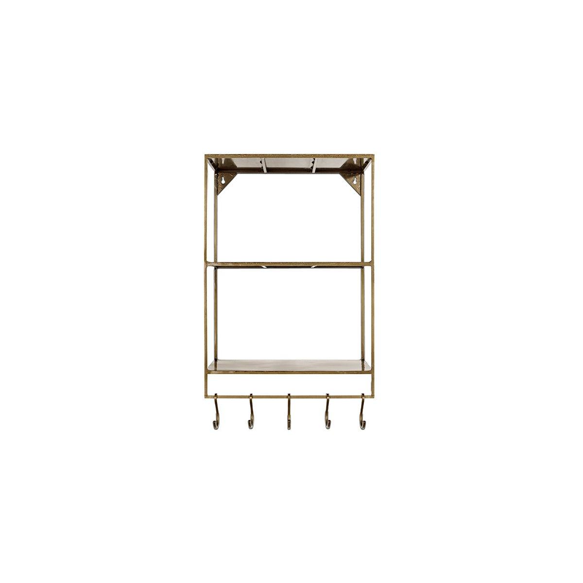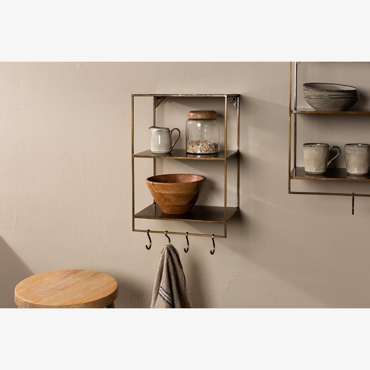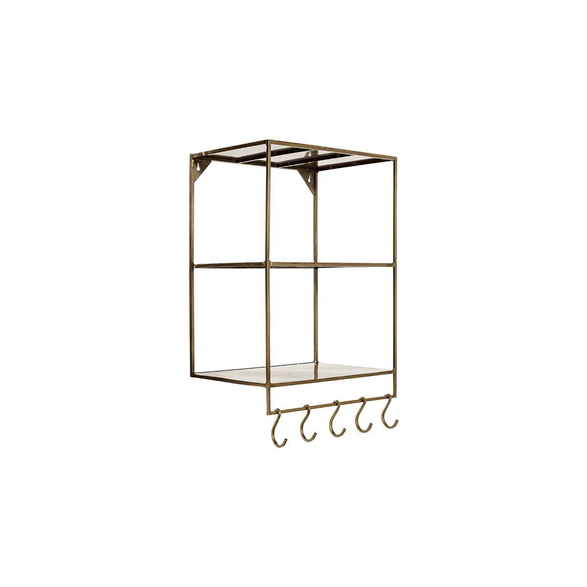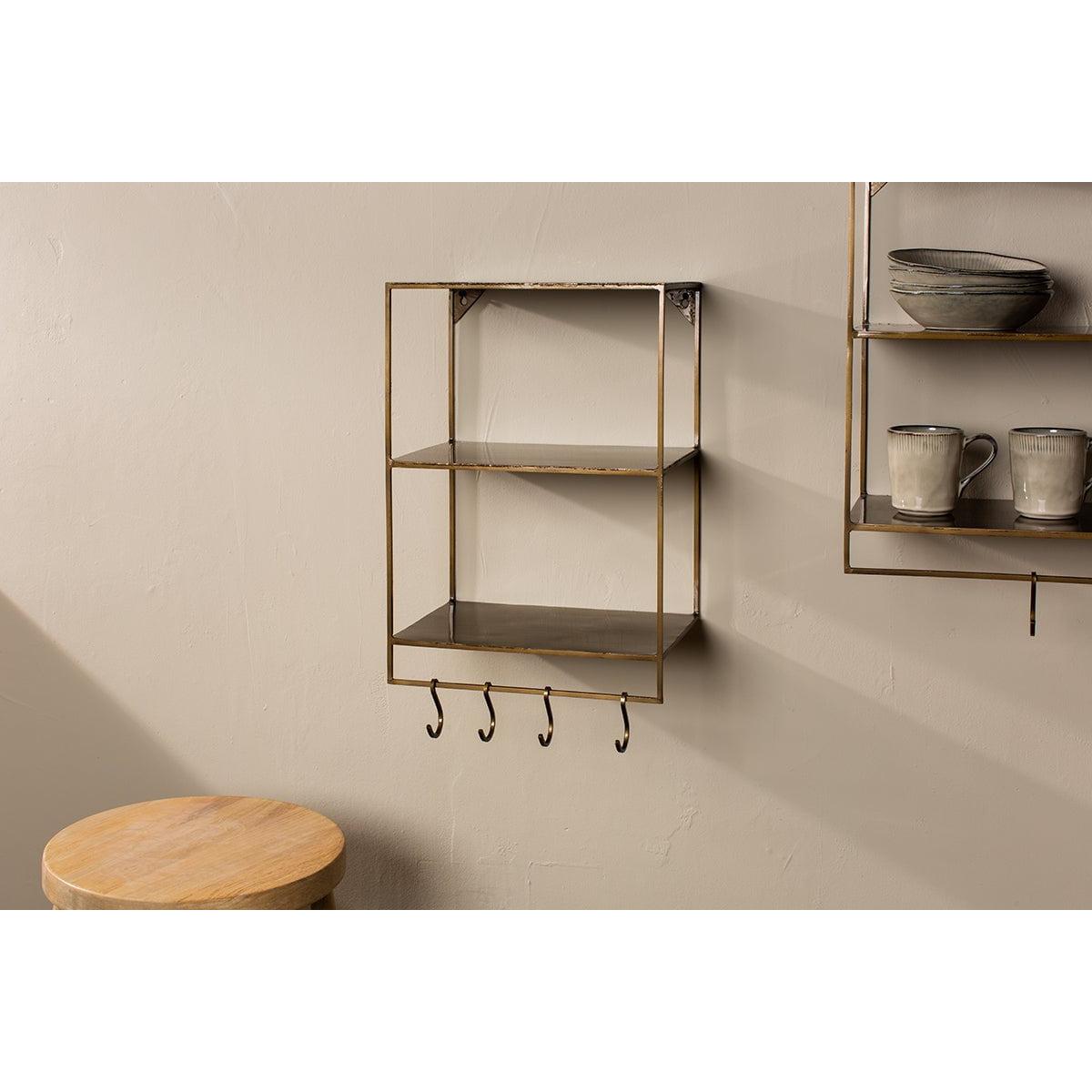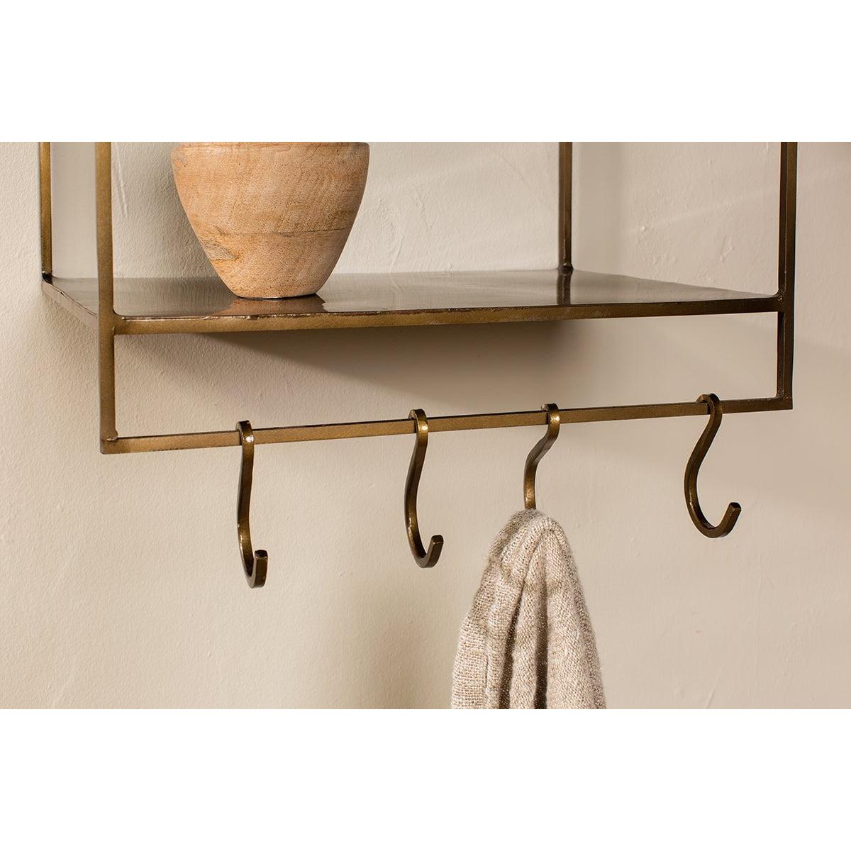 Nkuku Meghana Iron Shelf With Hooks | Storage Furniture | Brass | Narrow