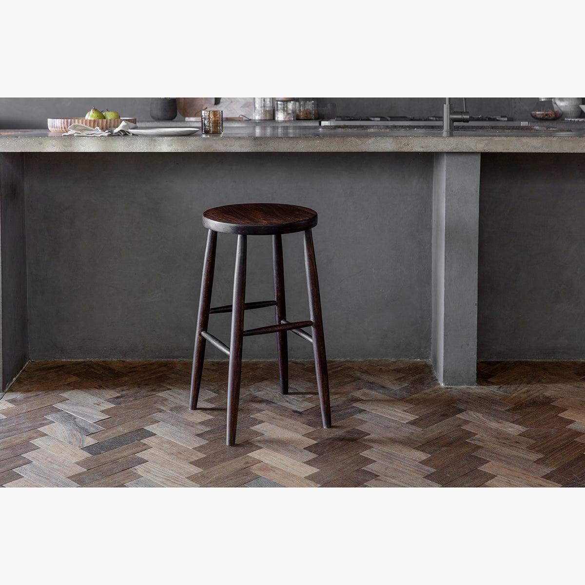 Nkuku Mengwi Mango Wood Round Bar Stool | Chairs Stools & Benches | Dark Brown