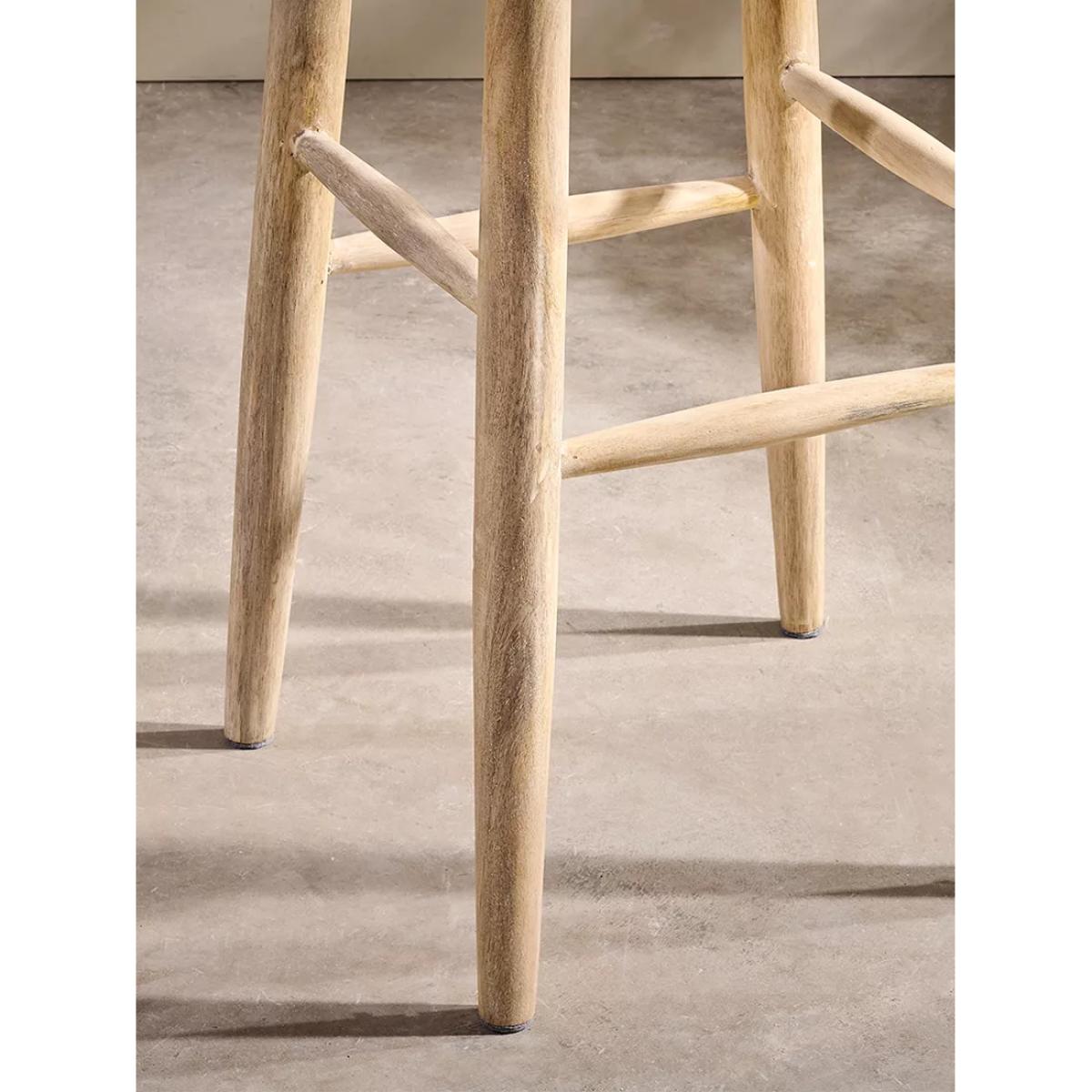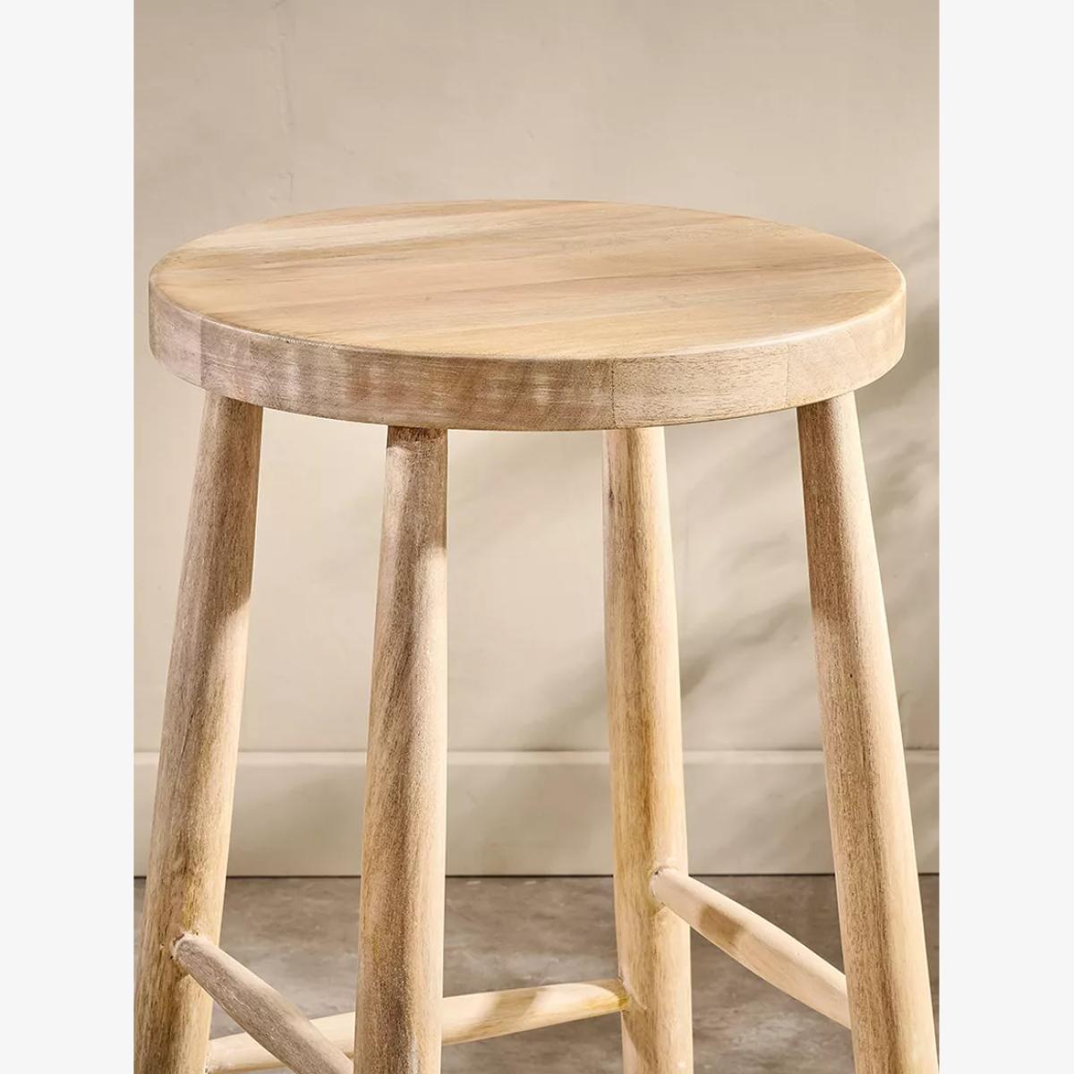 Nkuku's Mengwi round bar stool is made from sustainable mango wood. The understated design, together with the rustic finish, creates a beautiful, tactile stool that will suit any interior. Each piece is handcrafted by artians in India and is made with both comfort and quality in mind. The mango wood used to make Nkuku's wooden pieces comes from mango trees that have stopped bearing fruit. This allows the farmers to plant more trees and provides them with a supplementary income.
