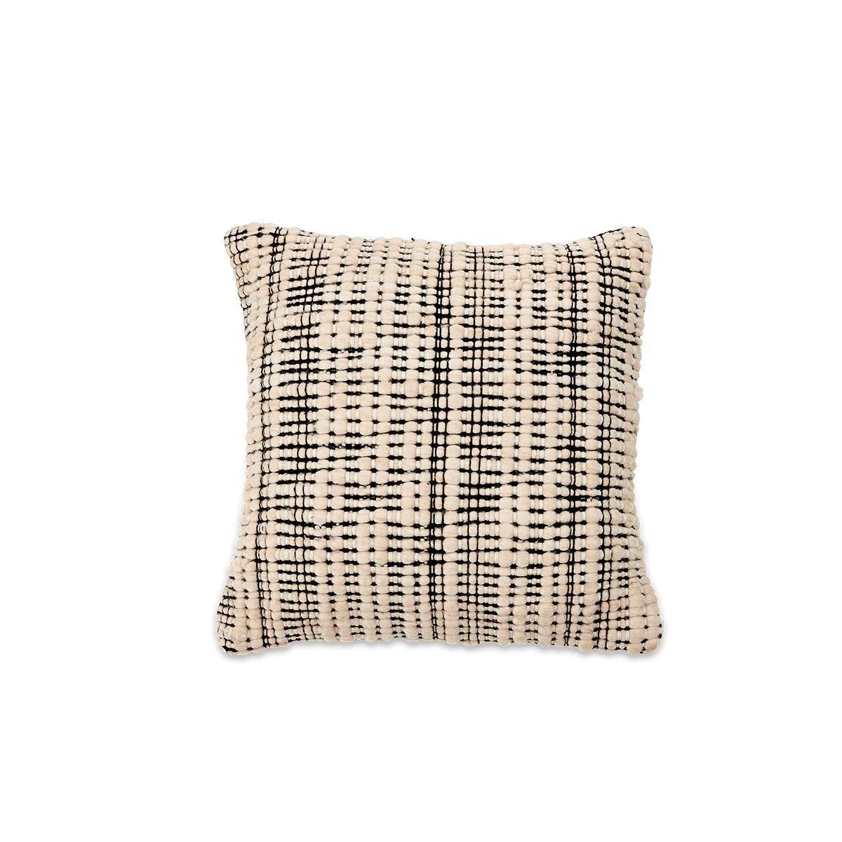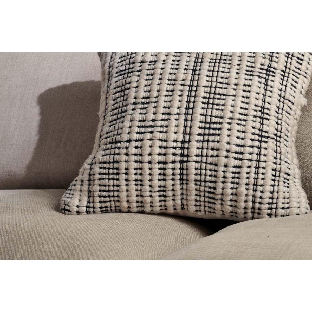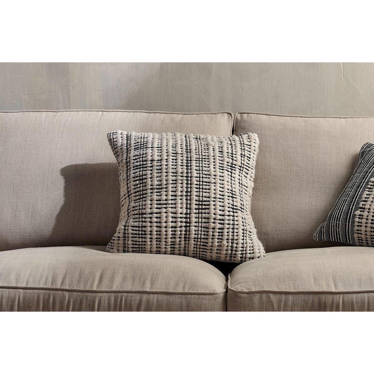 The soft textures of our Mika Square Cushion Cover blend recycled materials in an appealing pattern and soft tangible finish. Play with shapes and sizes, for an easy way to revive your home interior. Please note cushion inner is sold sperately. | nkuku Mika Recycled Cushion Cover | Textiles | Black/Natural | Square
