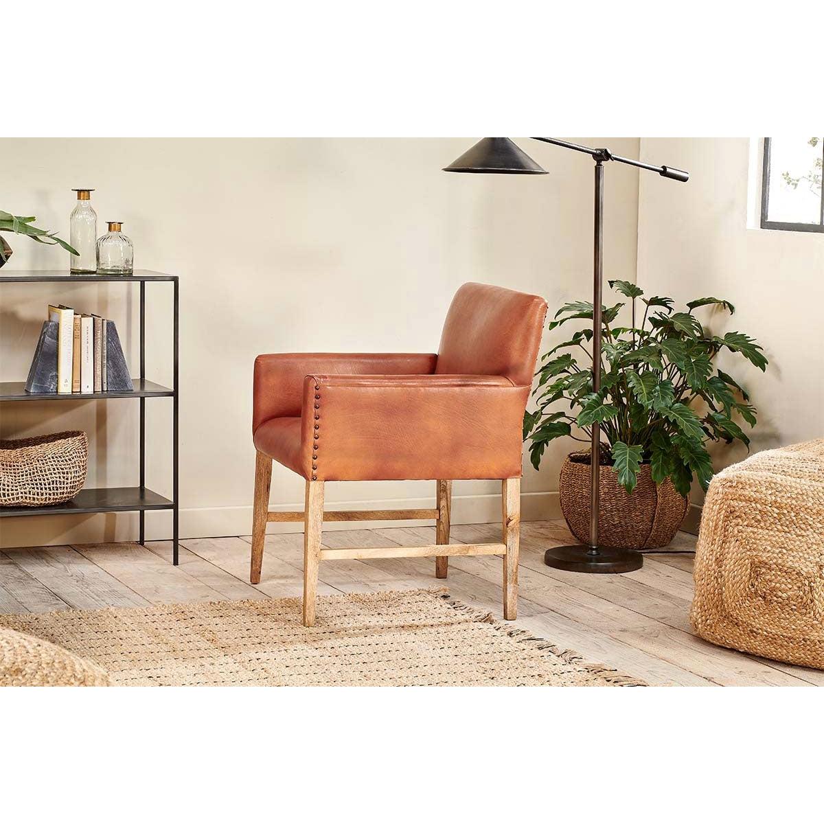 Nkuku Mirzapur Leather Desk Dining Chair | Furniture | Tan