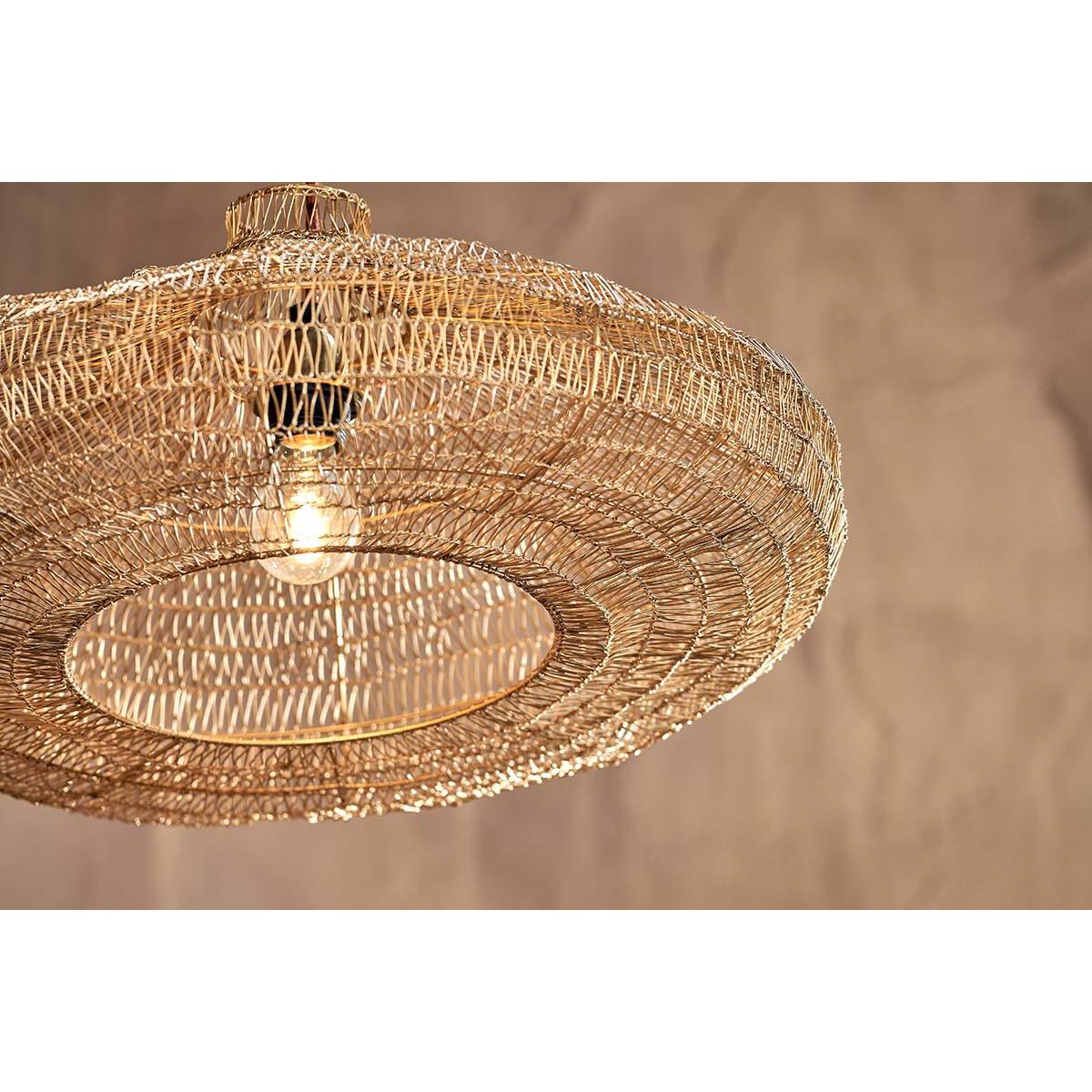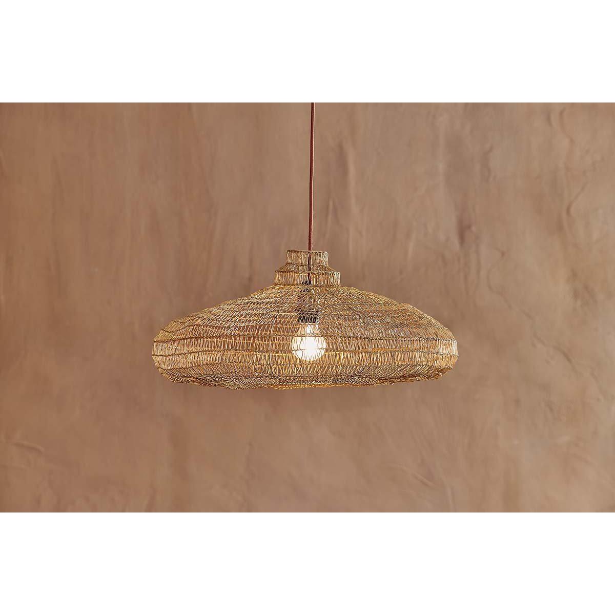 I love this wire lampshade for its versatile, handcrafted appeal and subtle touch of glamour through its gold finish. It works particularly well in boho, coastal, or Scandinavian interiors, especially when paired with natural fibres or neutral palettes. Practical styling tips include hanging it over dining areas or in open-plan living spaces to create a warm, inviting glow. It’s also a great choice for layering with other lighting pieces for added depth, and its airy structure allows for unobstructed light diffusion, making it as functional as it is stylish. This piece can elevate a simple space with minimal effort, making it a chic yet practical addition to modern or eclectic interiors.