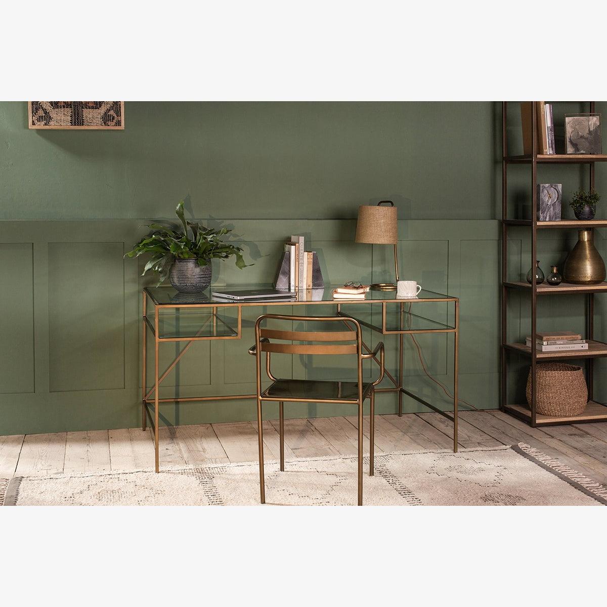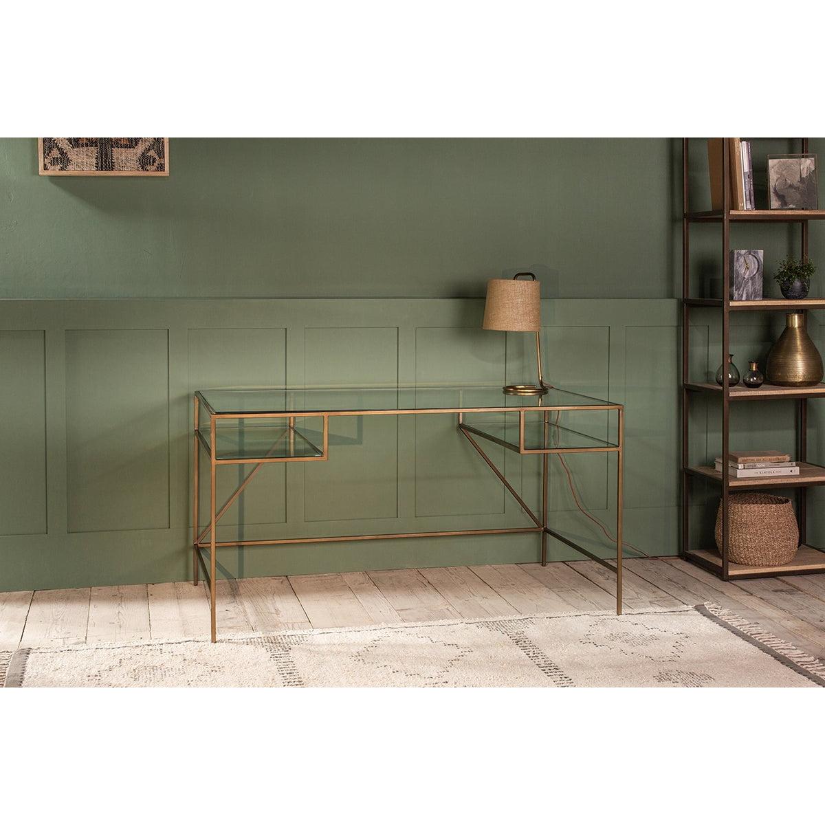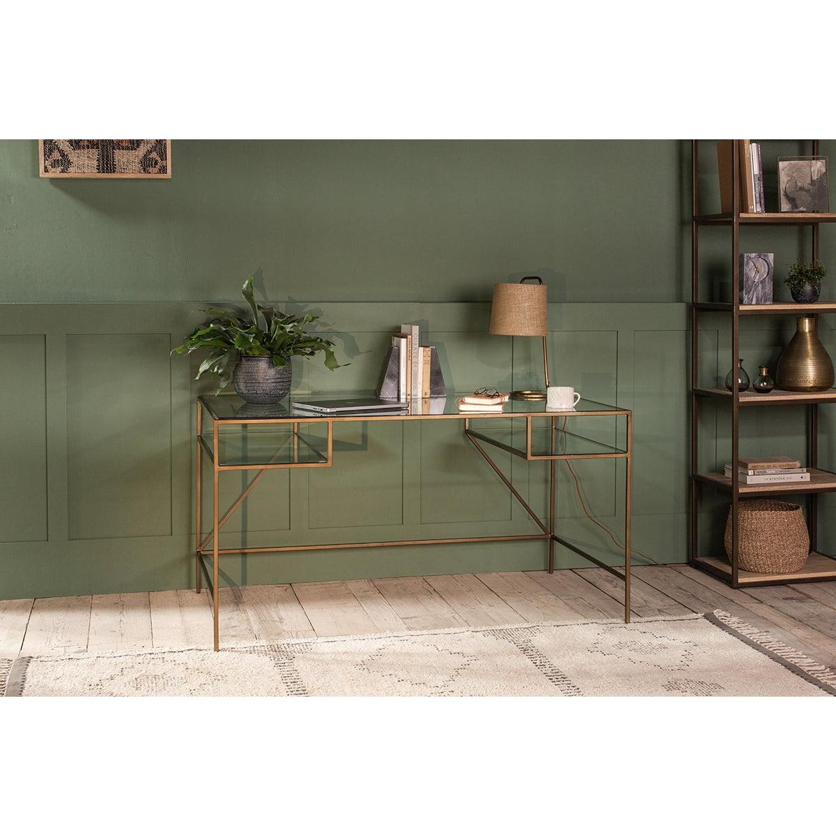Nkuku Nakuru Iron & Glass Desk | Tables | Brass