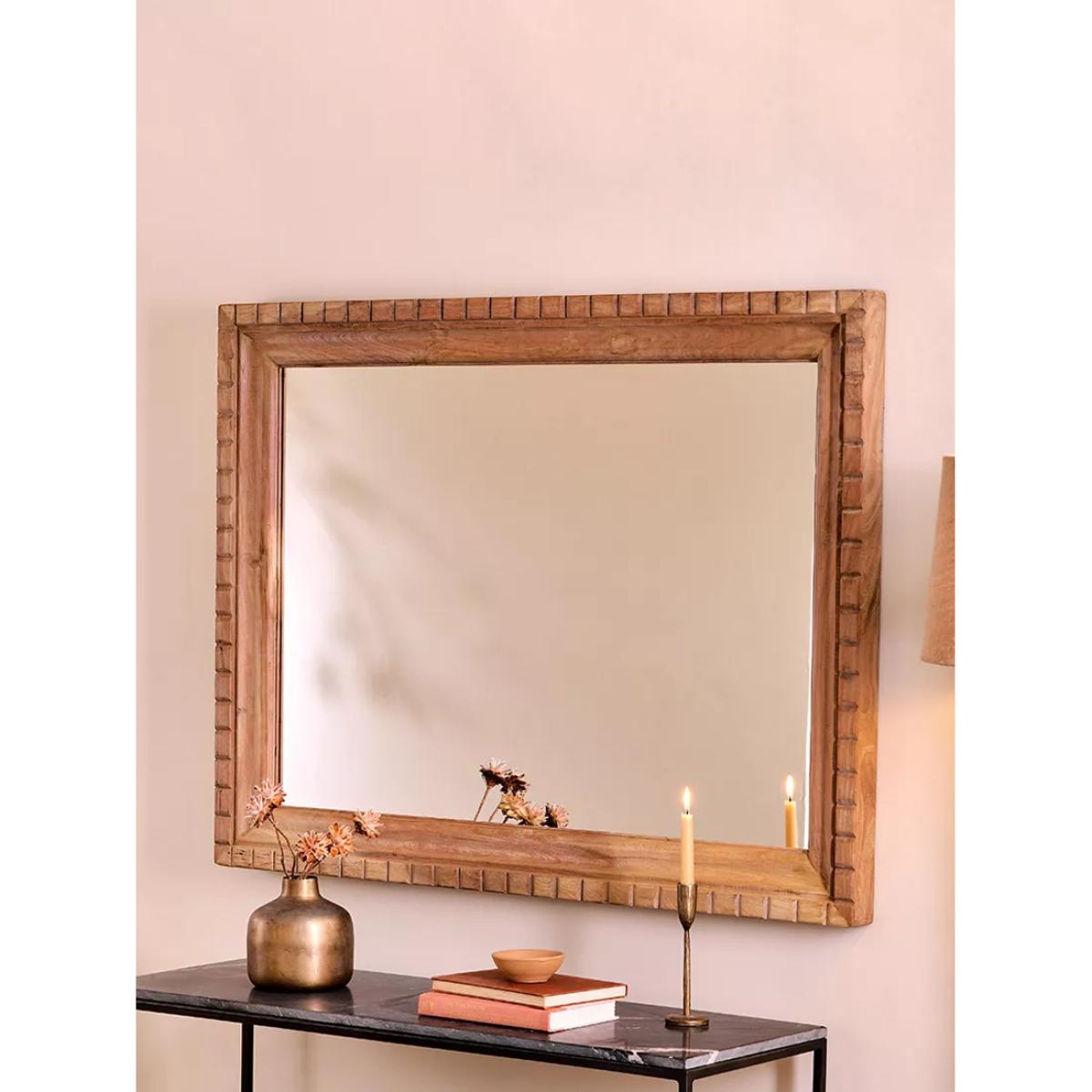 Nkuku Nalda Rectangular Carved Reclaimed Wood Wall Mirror, 90 x 120cm, Natural