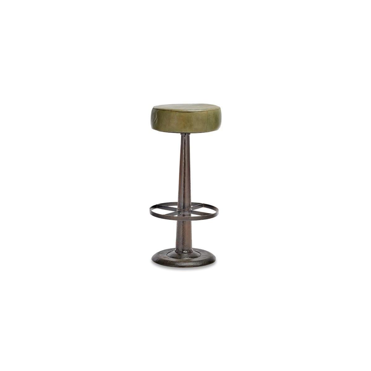 Nkuku Narwana Leather Round Stool | Furniture | Green