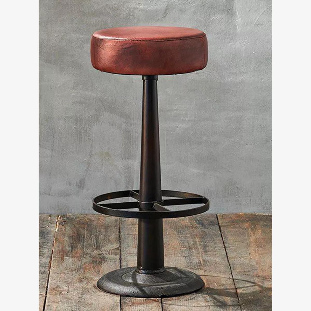 I love this little stool because of its versatile, timeless appeal and the combination of rich leather with industrial-style metal. It works really well in both contemporary and vintage-inspired interiors, adding warmth and character to kitchen islands, home bars, or even as an accent piece in a living space. Practical styling tips include pairing it with a rustic wooden table or contrasting it with sleek, modern furniture for an eclectic look. Its compact size makes it perfect for small spaces or for use as an extra seat when needed, and the leather finish develops a lovely patina over time, adding to its charm.