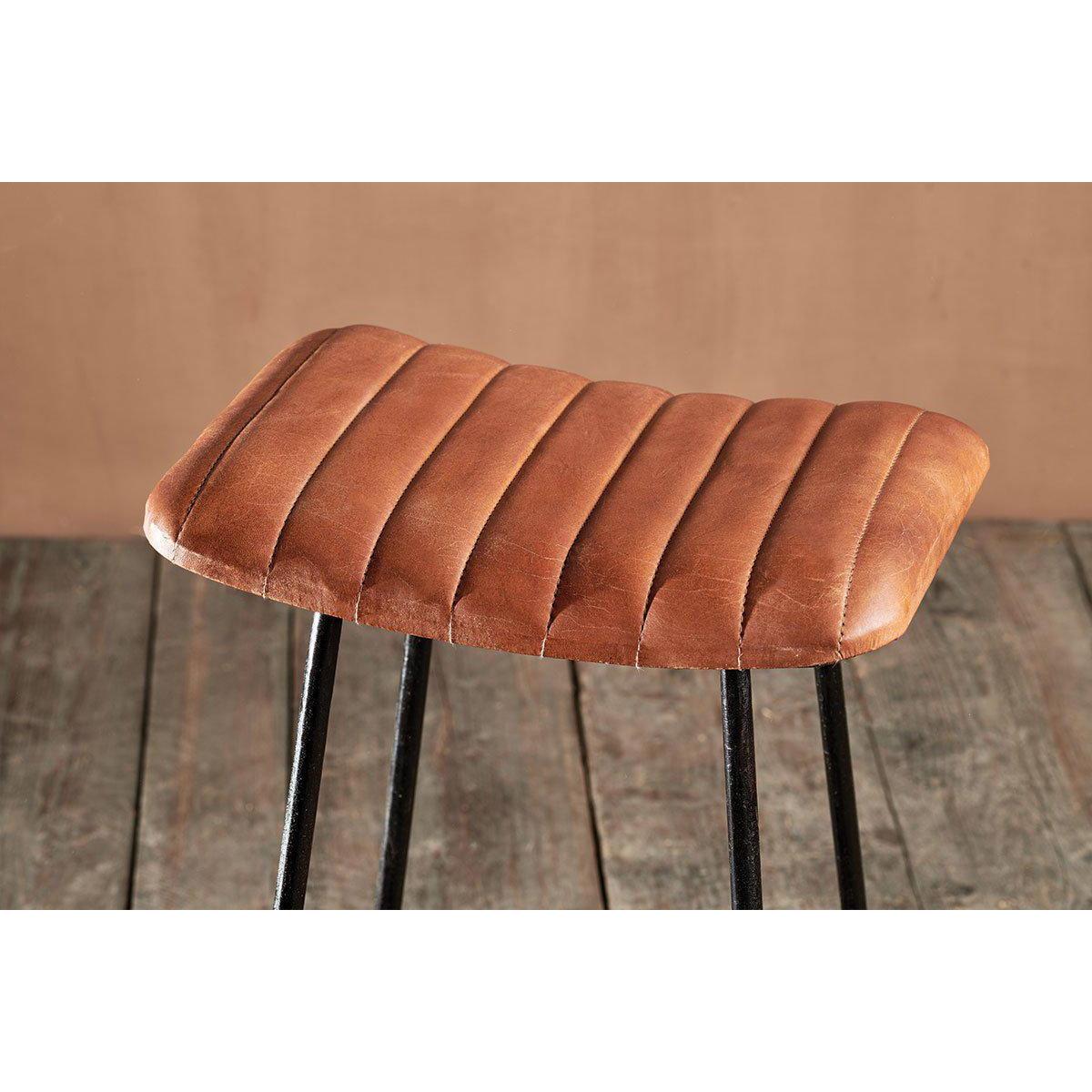 nkuku Narwana Ribbed Leather Stool | Seating | Aged Tan | Large 75 x 51 x 40 cm