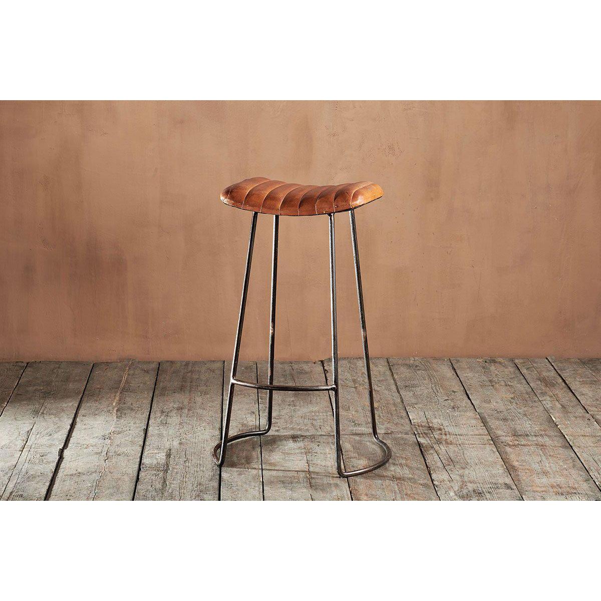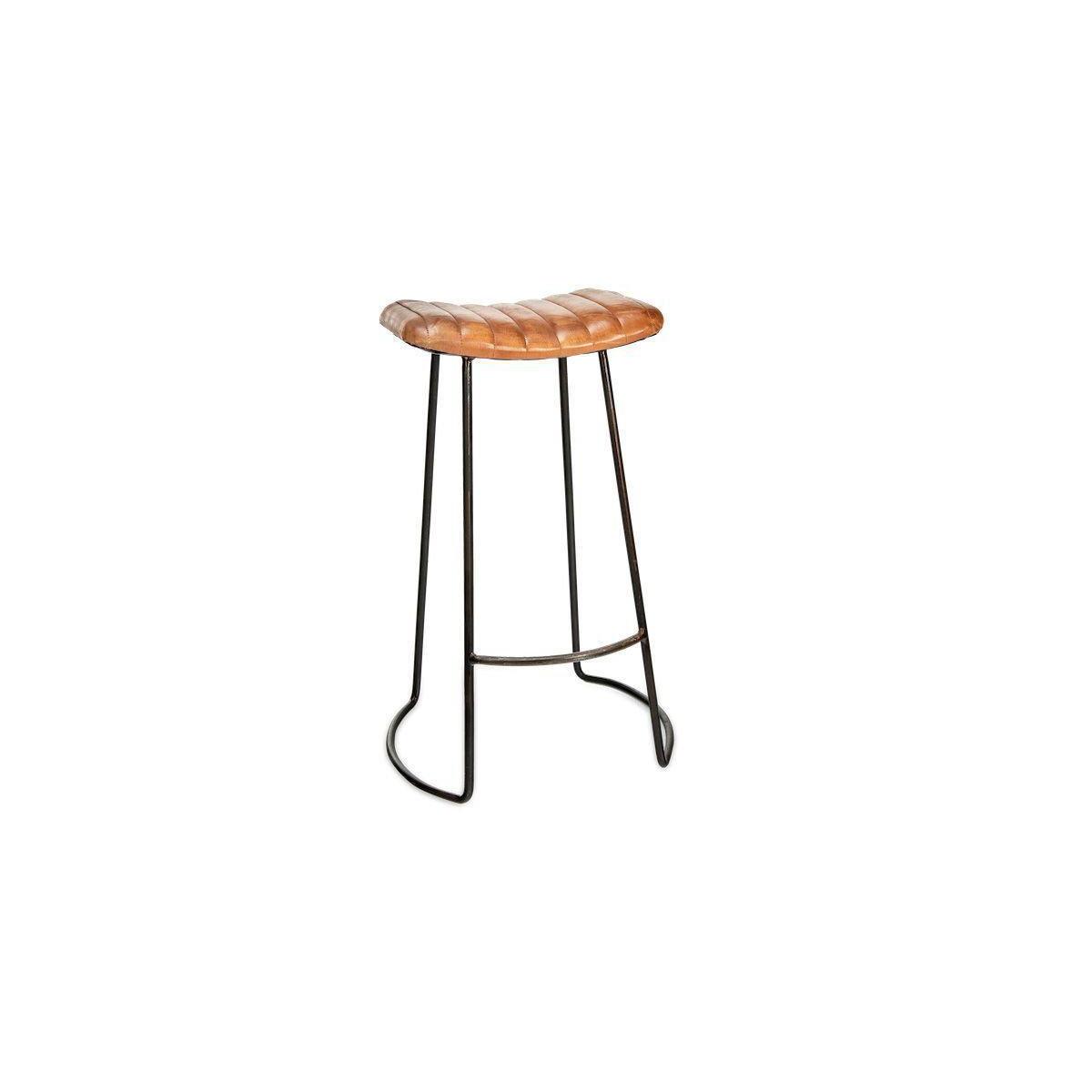 I’m a fan of this Narwana stool for its hard-wearing ribbed leather seat and slender black metal frame - it brings a hint of industrial character without feeling bulky. The warm tan leather sits well against neutral walls or darker cabinetry, adding texture and a subtle focal point to a kitchen island or bar corner. For styling, group a couple of these stools under a reclaimed-wood counter, then layer in a woven seat pad or a small lumbar cushion in muted tones to soften the look. Their 75 × 51 × 40 cm footprint makes them versatile as extra seating in a hallway or even as a side table beside a sofa.