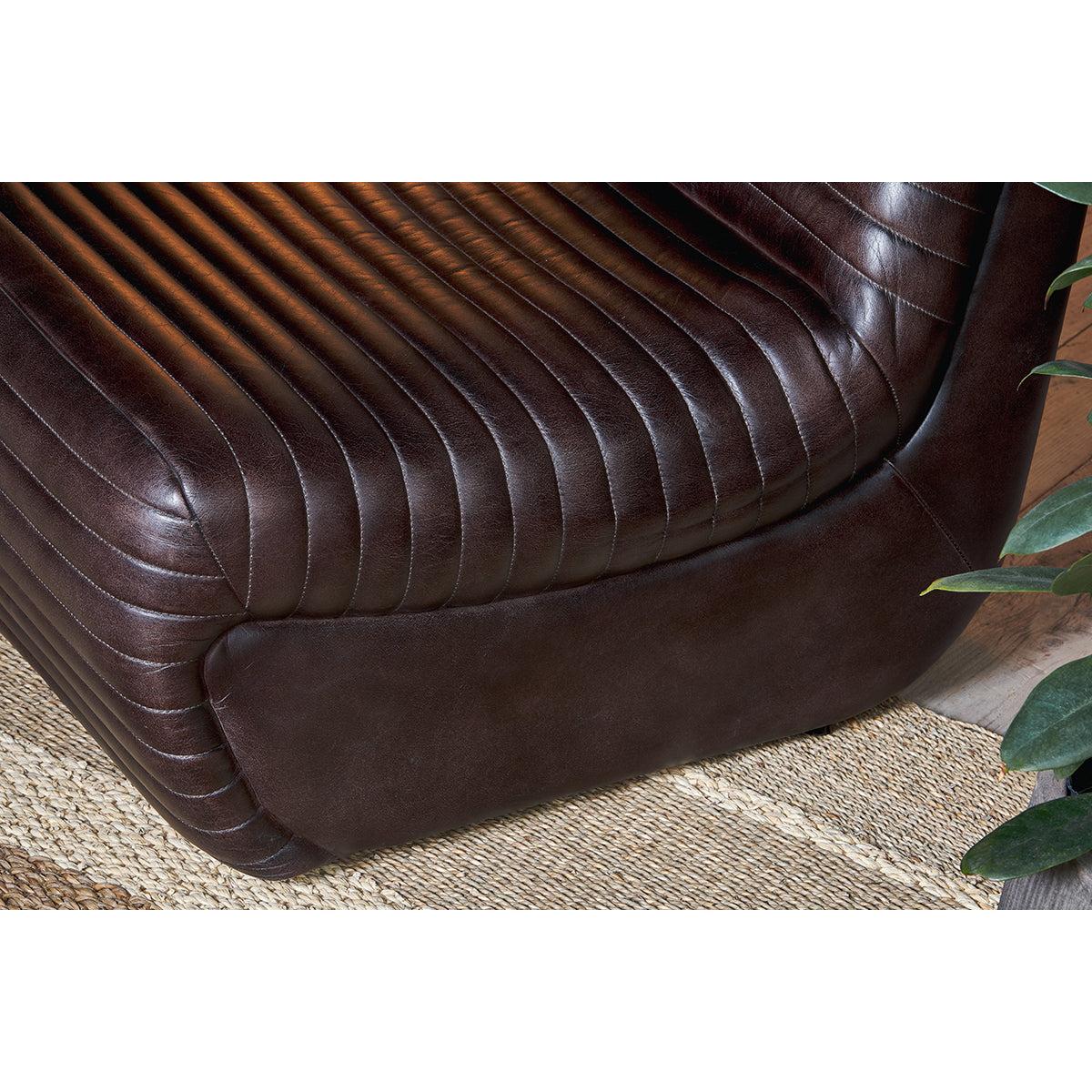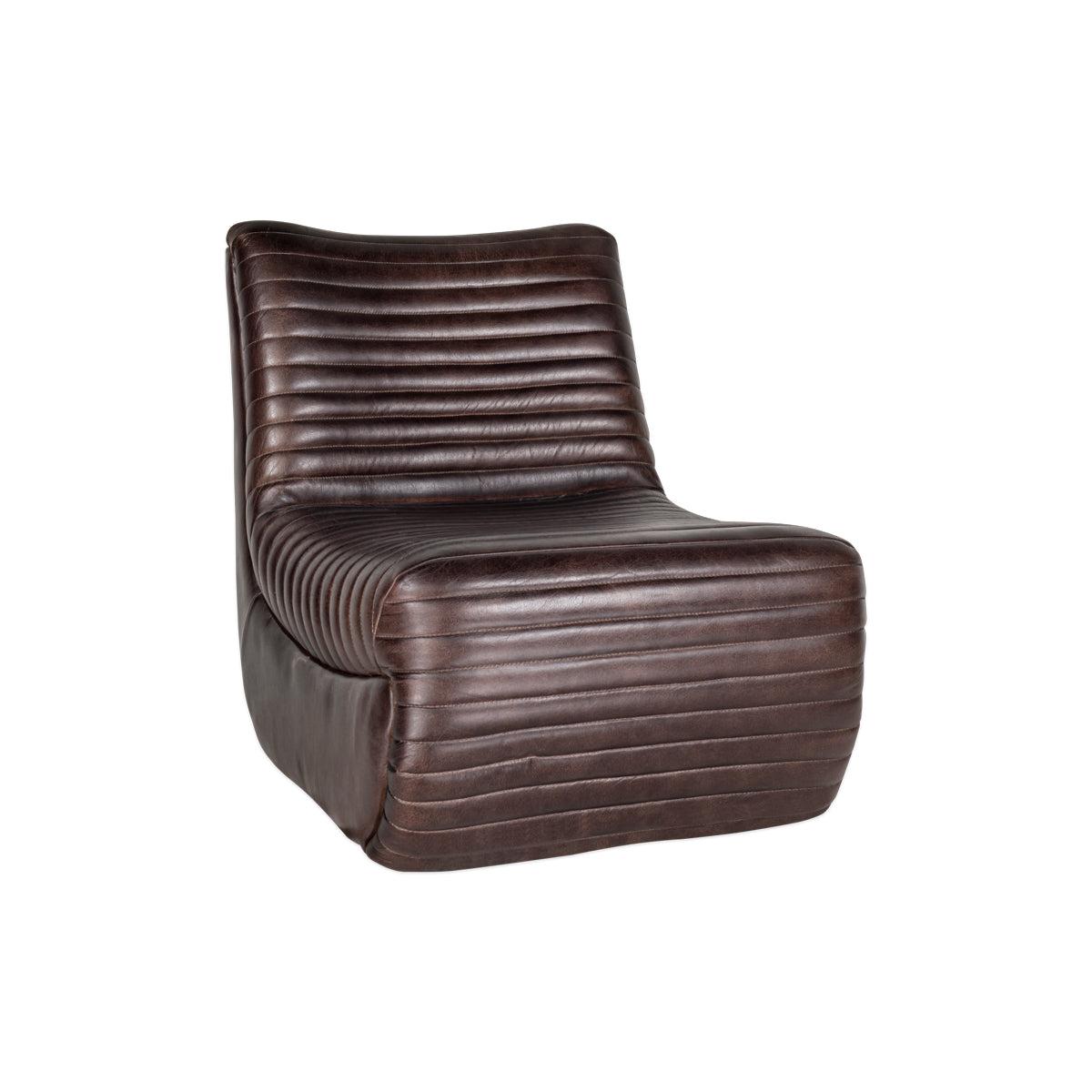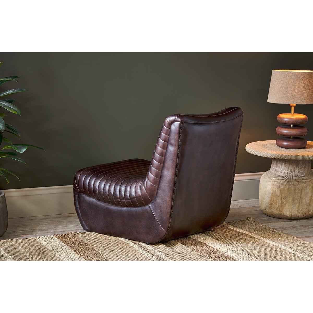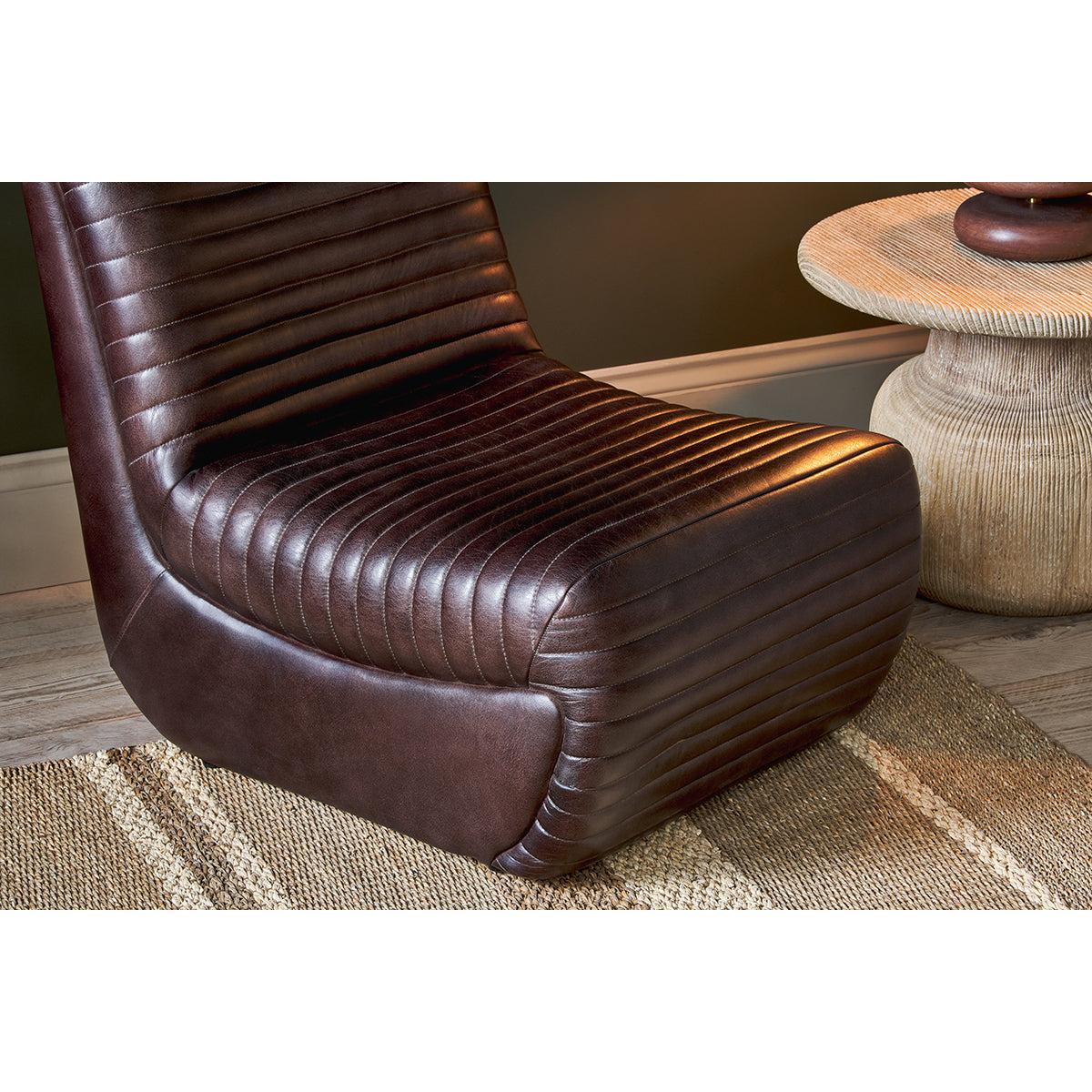 I love this piece because of its rich chocolate brown tone and textured ribbed leather, which adds a sophisticated touch to any space. It works particularly well in eclectic or modern interiors, where its statement presence can contrast nicely with neutral or minimalist colours. Practical styling tips include pairing the accent chair with marble or wooden side tables for added warmth, and accessorising with cushions or throws in complementary hues to soften its sleek silhouette. It’s an excellent choice for creating a cosy corner in a living room or an inviting reading nook, making the space feel both stylish and comfortable.