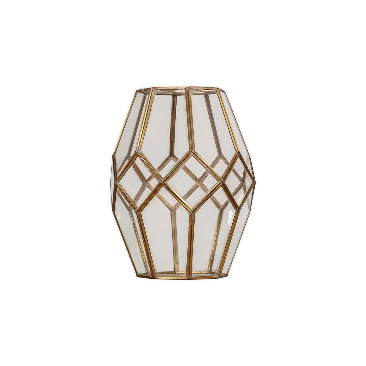 nkuku Nazat Panelled Glass Easy Fit Lamp Shade | Lamps And Shades | Antique Brass/Clear