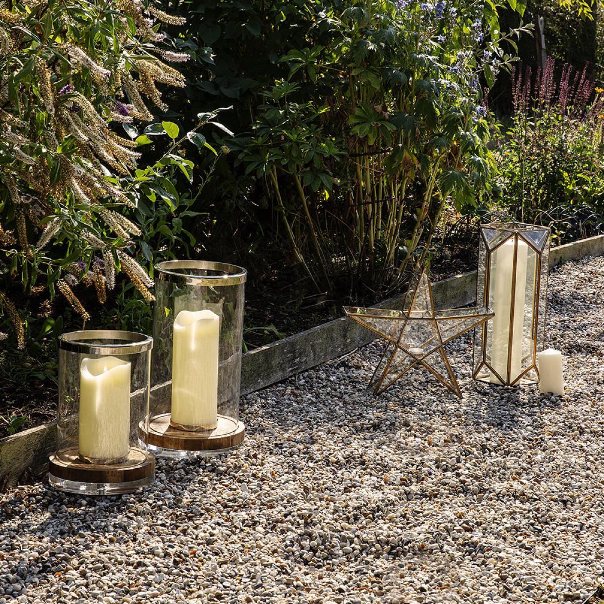 Adorn your fireplace or mantelpiece with this exquisite Ndiki lantern from Nkuku. Made from glass, the contours are outlined by antique brass detailing making this lantern a beautiful decorative piece, as well as the perfect lantern for pillar candles. Please note, a candle should always be placed in the centre of the lantern before lighting. Available in two sizes, cast a warming glow in your interior with the Ndiki lantern from Nduku.