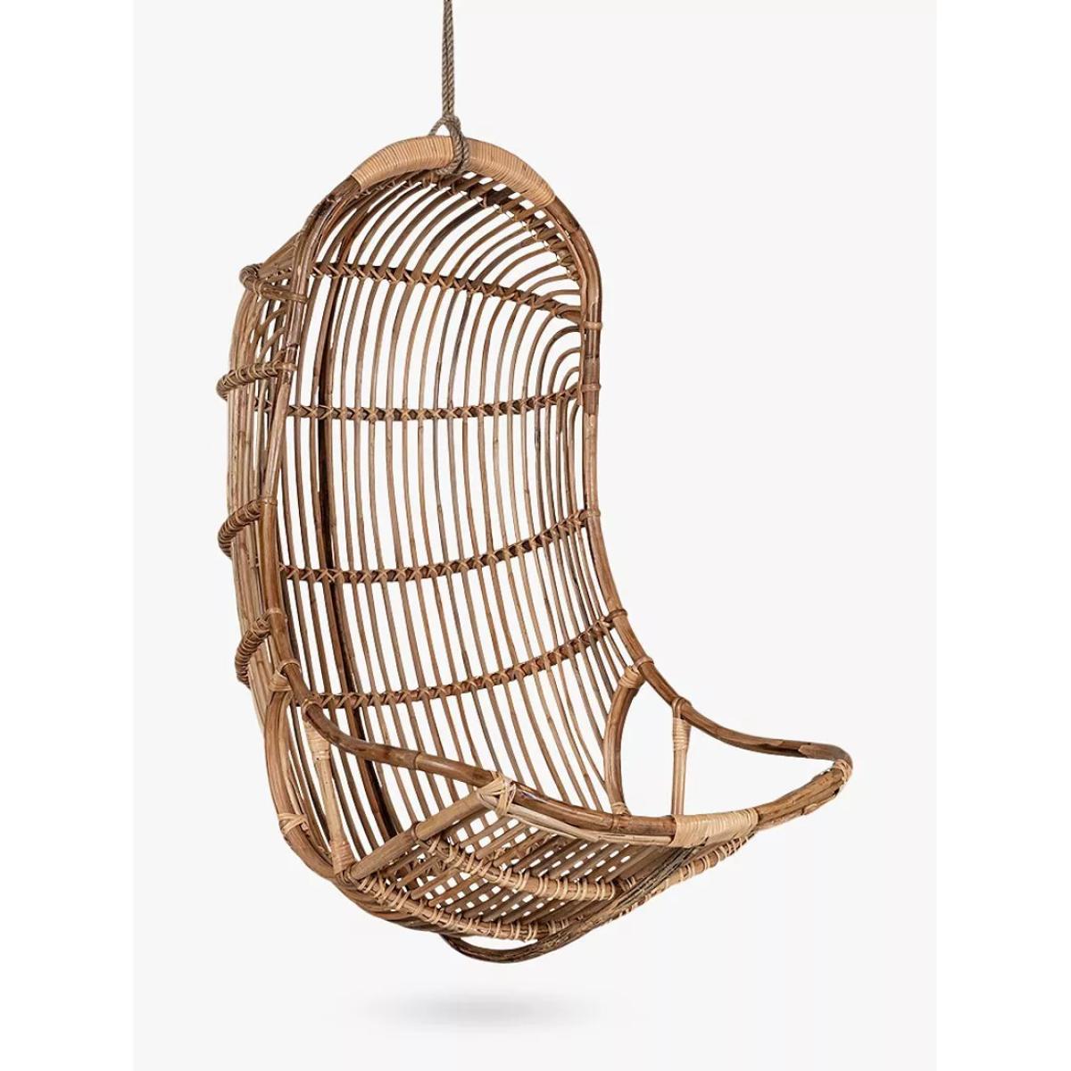 Evocative of laid-back summers, this Nesari hanging chair offers the ultimate outdoor reading spot. The traditional style and natural rattan make this the perfect seating for relaxed outdoor living, but it works equally well in the corner of a living space if there's a suitable hanging attachment. Secure the piece from a sturdy branch, beam or load-bearing frame or hook and recline in a gentle swaying style. Lightweight and easy to take down for winter storage, this durable woven seat is beautifully handcrafted by steam-bending natural rattan, an incredibly fast-growing crop, making for a low-impact material choice. Installation Indoor installation should be carried out by a professional tradesperson. Mistakes may mean damage to your ceiling or hanging chair, as well as injuries to anyone using the chair. Hiring a tradesperson will also save you time. If using outdoors, make sure that the rope is not exposed to excessive moisture. The rope provided with this hanging chair is made from natural fibres which are susceptible to environmental factors. To prolong the life of the rope, we recommend cleaning it with warm soapy water. The hanging chair should be installed under a shelter to avoid any rope degradation or mould. We recommend checking the rope on a regular basis. For indoor installation, ensure you have an accessible ceiling joist away from walls and other obstacles. Ensure you have plenty of space to hang the chair.