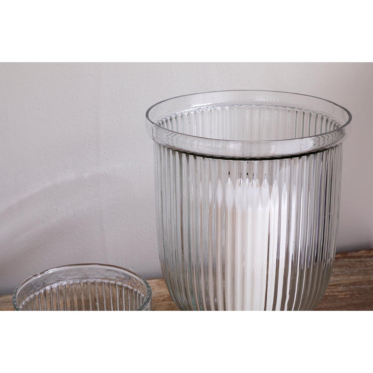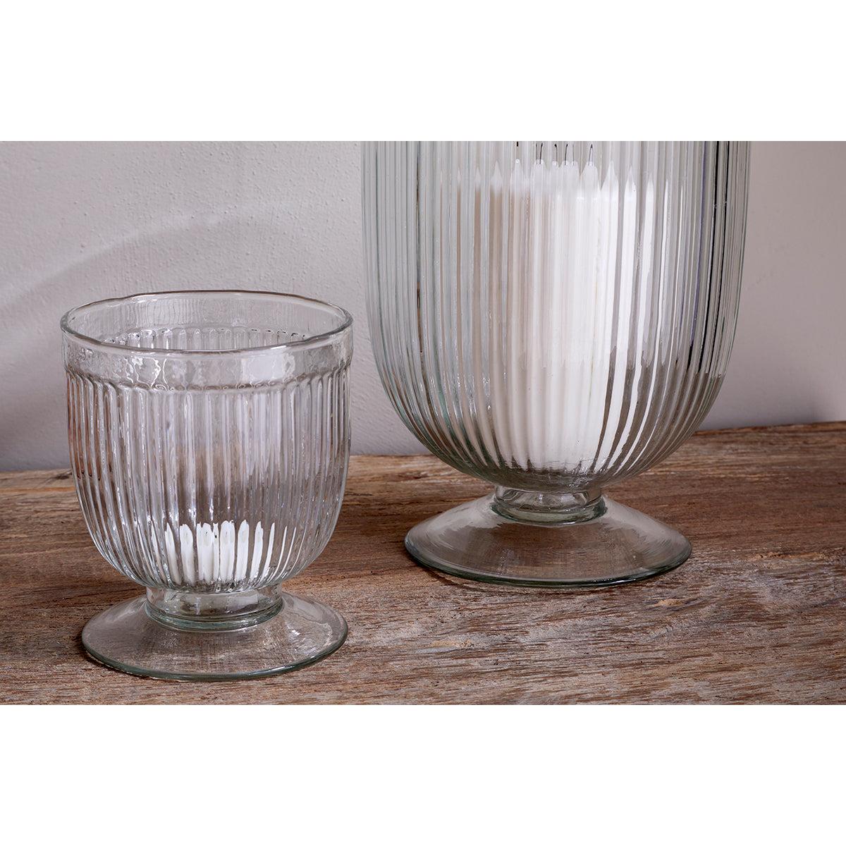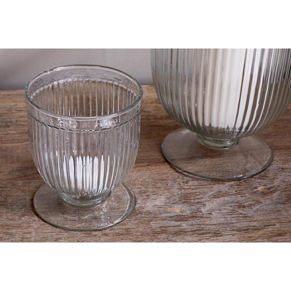 Carefully crafted from recycled glass, our Nia Candle Holders feature a sophisticated fluted design. Once lit, they create a beautifully patterned glow that enhances the atmosphere of any space, and on a stand, the light is elevated, adding an elegant touch to your table. Combining sophistication and sustainability, the Nia Candle Holder is perfect for both everyday use and special occasions. Available in two sizes.