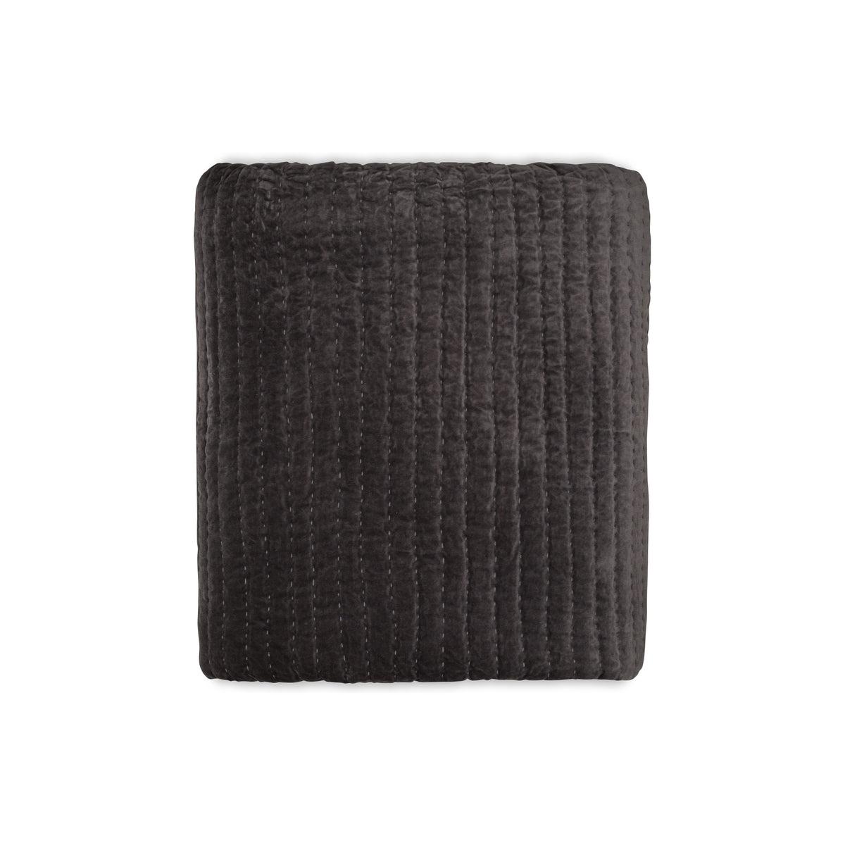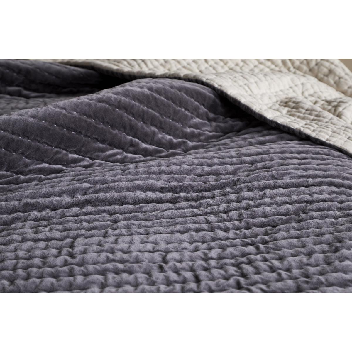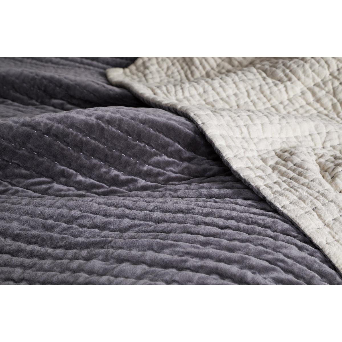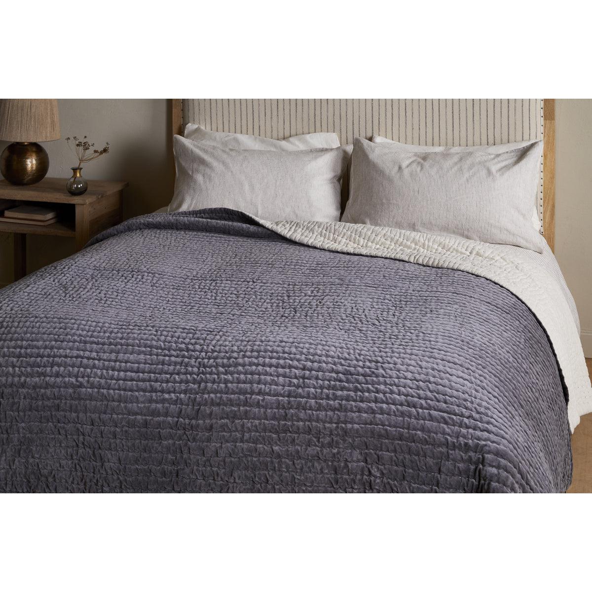 nkuku Nidra Velvet & Linen Bed Quilt | Textiles | Charcoal | 220 x 140 cm