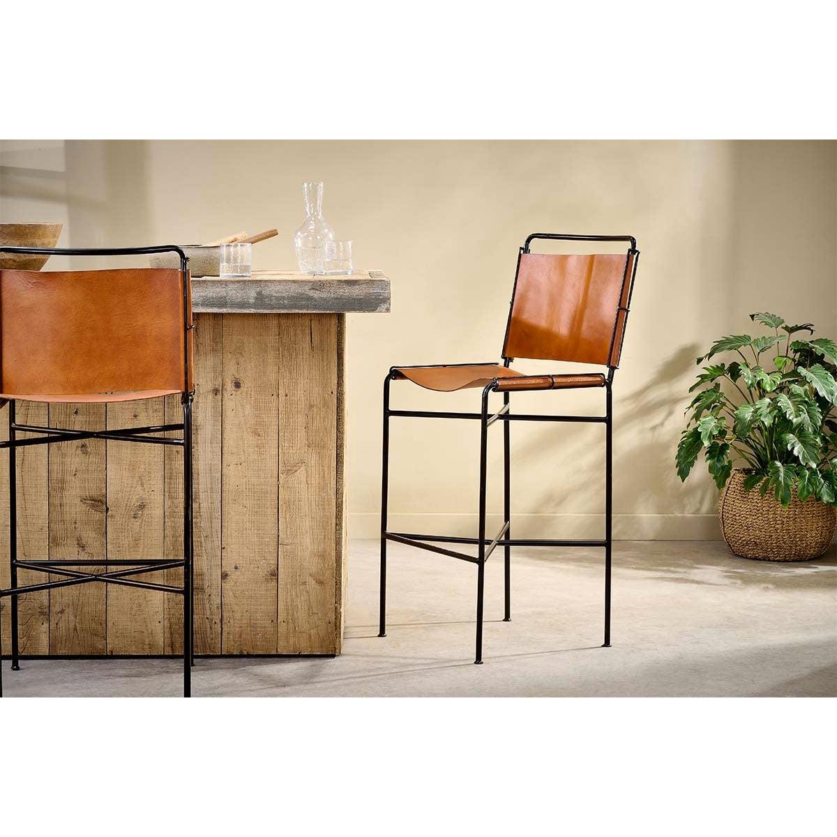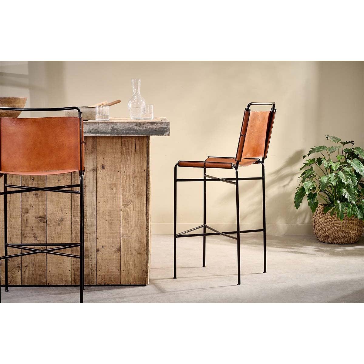 Nkuku Nirmi Leather Sling Back Bar Chair | Furniture | Tan