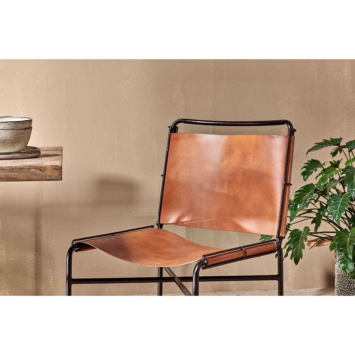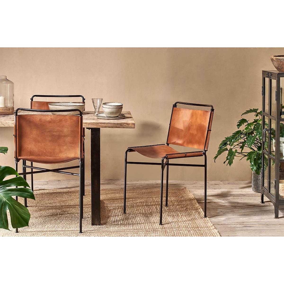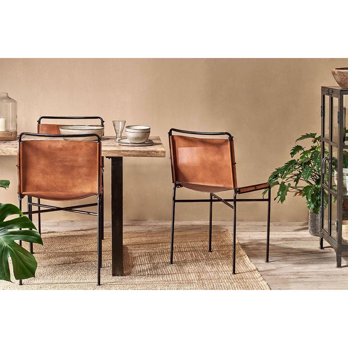 Nkuku Nirmi Leather Sling Back Dining Chair | Furniture | Tan