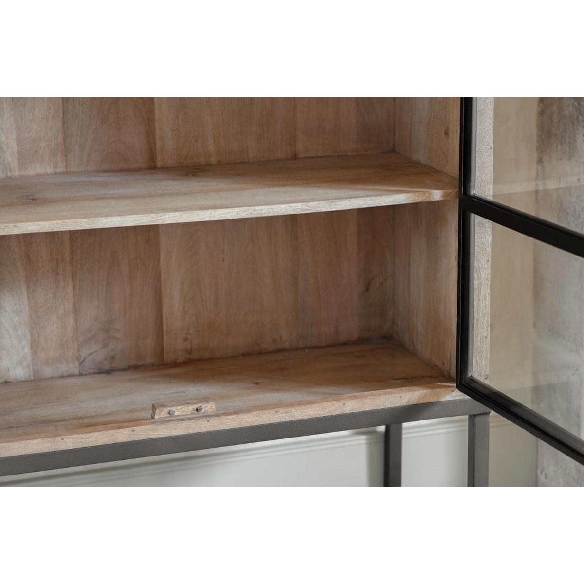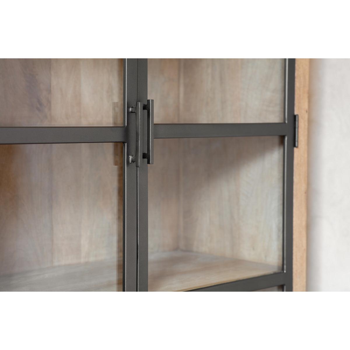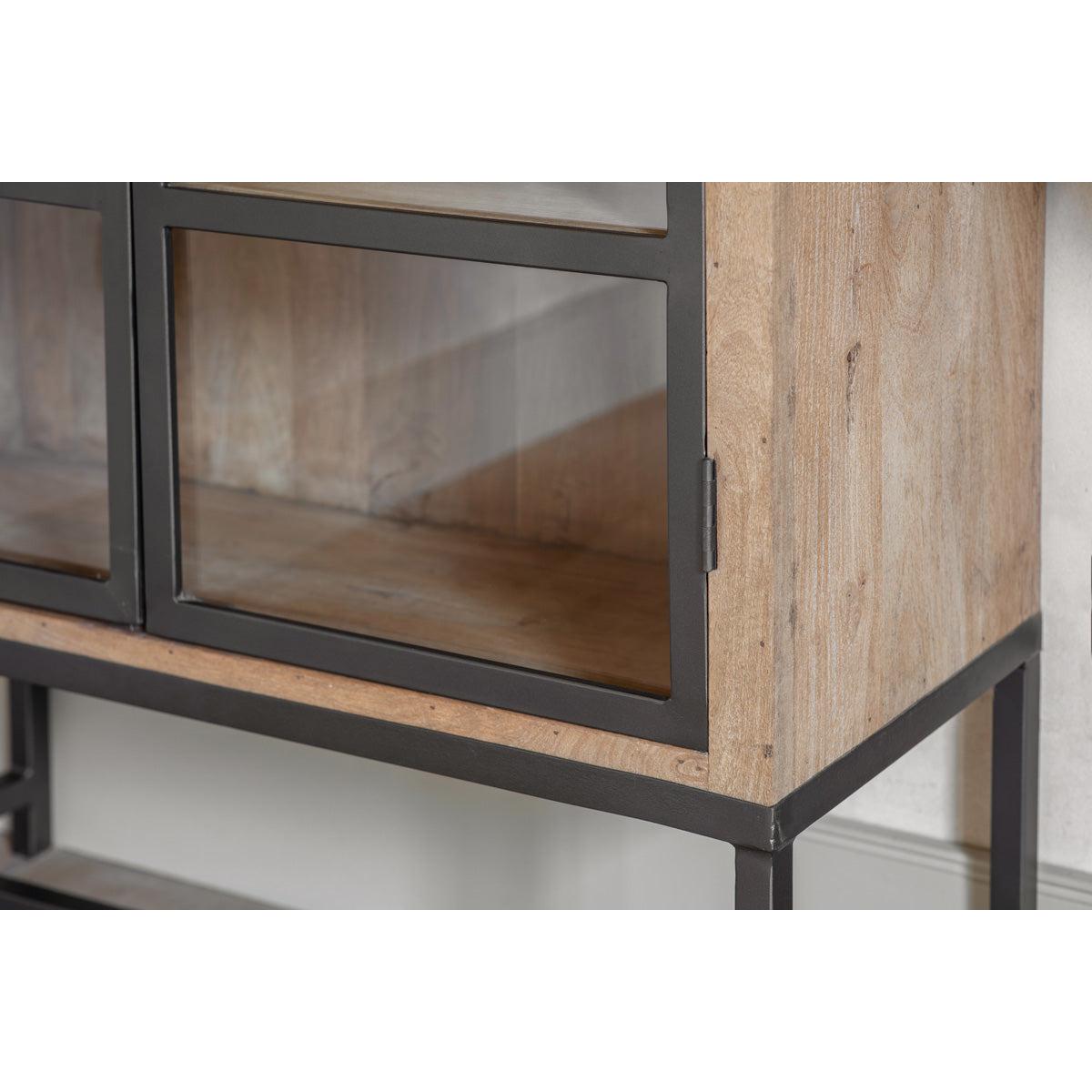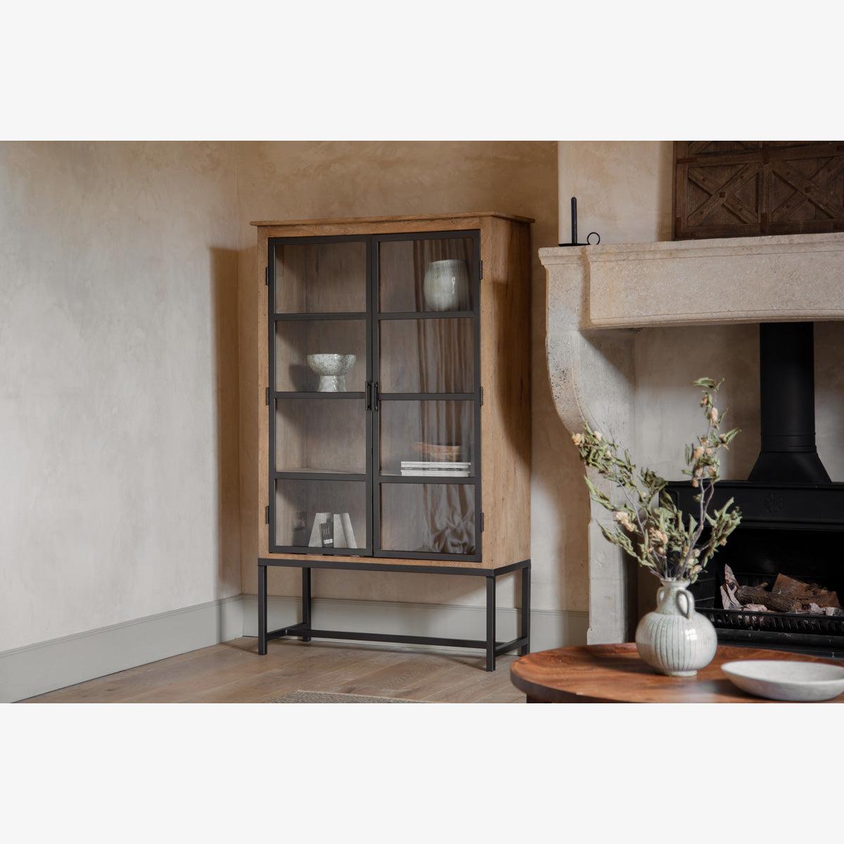 I love this cabinet for its sleek combination of wood and iron, which makes it a versatile piece that pairs well with both modern and rustic interiors. It works particularly well in living rooms or dining areas where you want to display favourite crockery or decorative items, but still need hidden storage. Its black finish adds a touch of industrial edge, making it suitable in spaces aiming for a contemporary or minimal aesthetic. For styling, consider layering with textured ceramics, vases, or books to create visual interest. You could also use it to break up larger wall units or to introduce some warmth into an otherwise neutral scheme, making it a practical yet stylish addition to a variety of rooms.