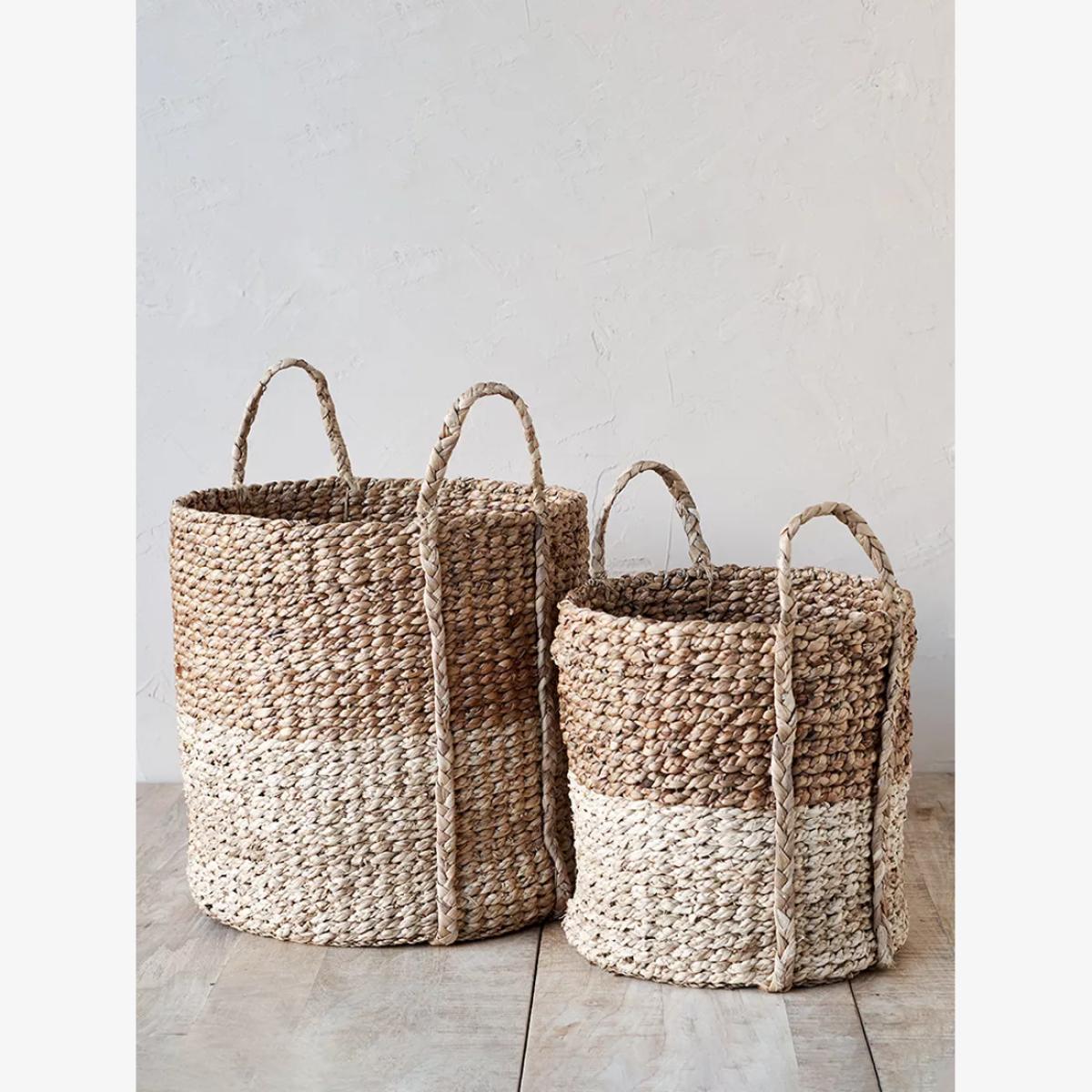 These Nkuku Nkomi baskets are beautifully handcrafted by talented artisans in Vietnam. Made from sustainably sourced water hyacinth to create two tone, practical baskets perfect for storing a range of household items.