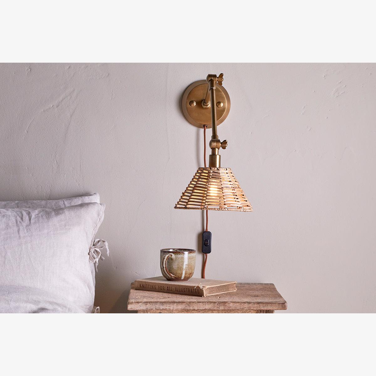 nkuku Noko Rattan Wall Lamp | Lights | Natural/Antique Brass
