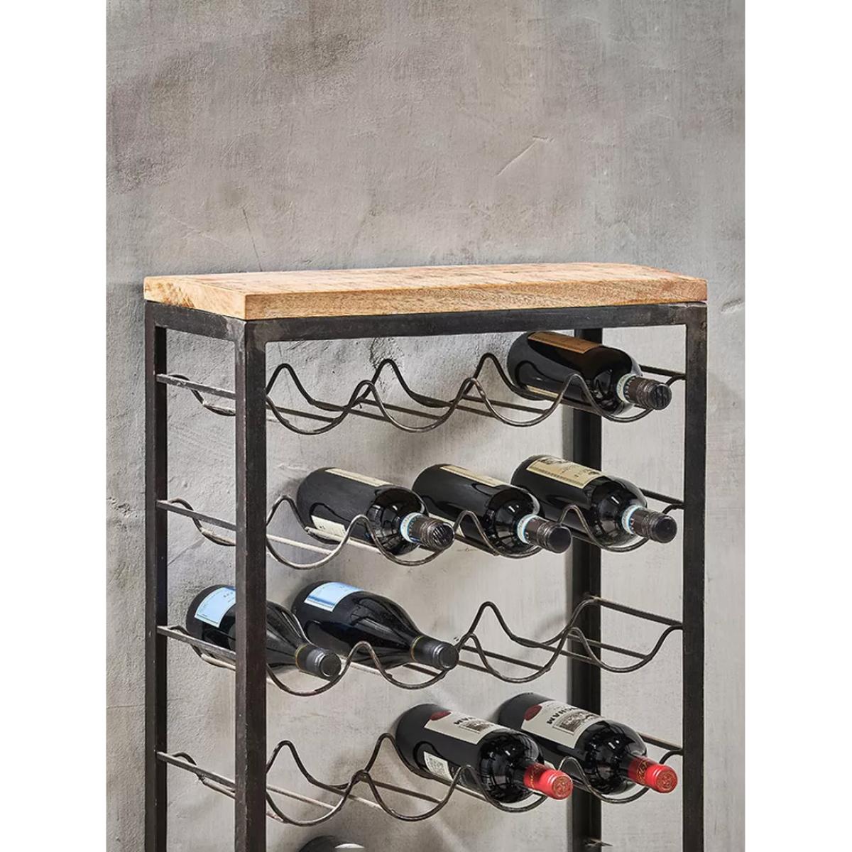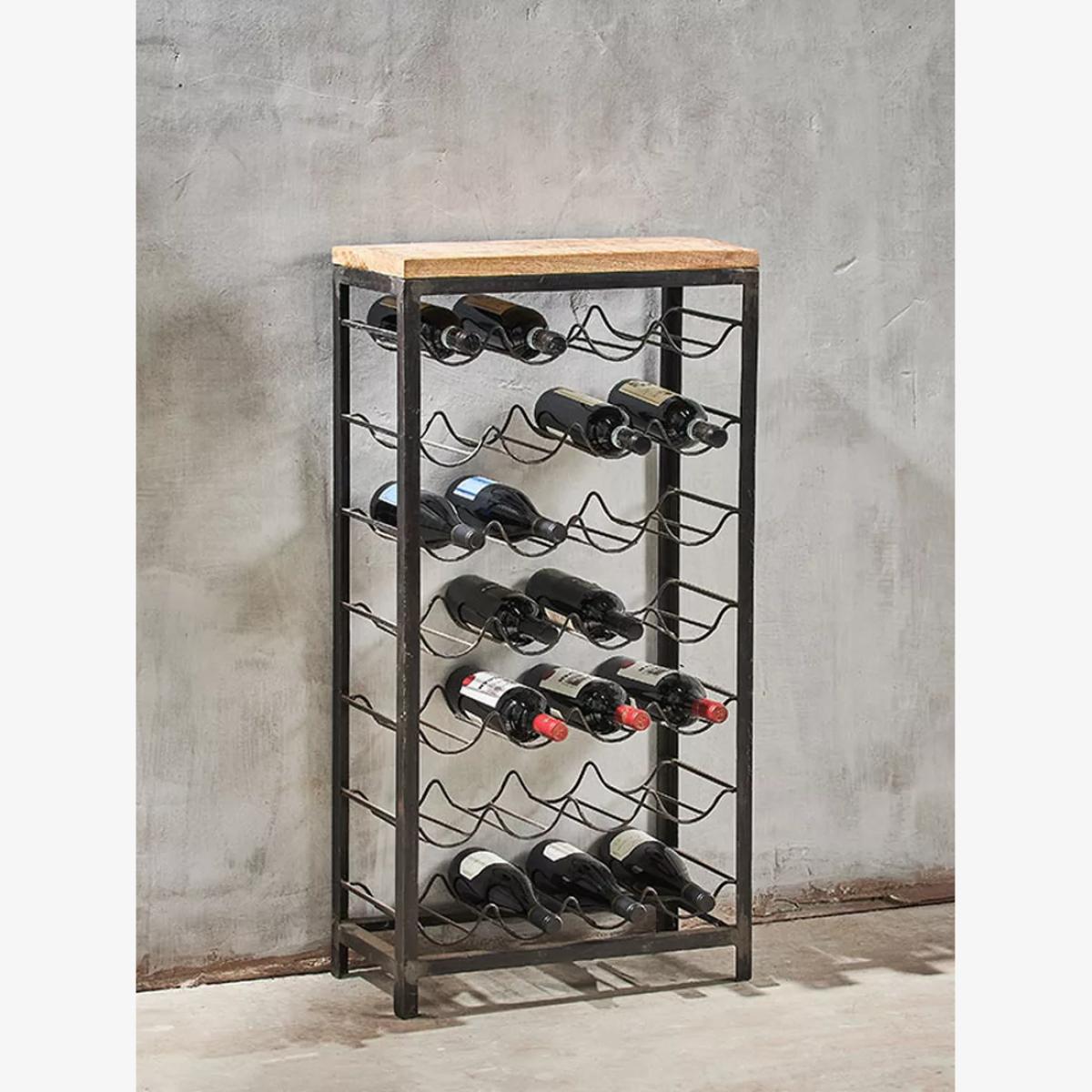 The Nkuku Obra wine rack is as practical as it is stylish, offering space to fit 28 bottles. Soldered from iron, it has a sturdy frame that's built to last and a beautiful, industrial aesthetic. The top is made from solid mango wood. The mango wood used to make Nkuku's wooden pieces come from mango trees that have stopped bearing fruit. This allows the farmers to plant more trees and provides them with a supplementary income. Made by skilled artisans in India using traditional techniques.