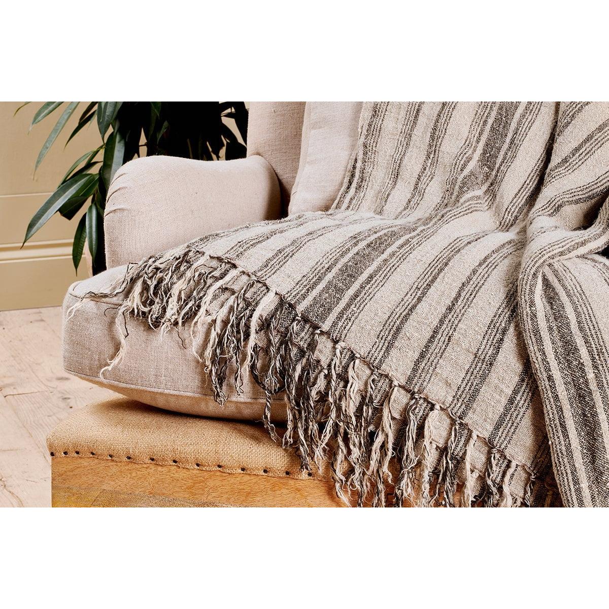 Nkuku Odisha Linen Throw | Textiles | Charcoal/Natural | 140 x 200 cm