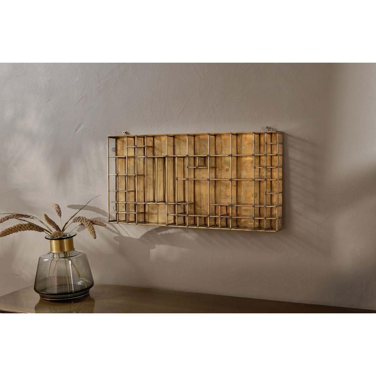 The Oni brass printer drawer takes its inspiration from traditional printing drawers, originally used to hold each individual letter for an old fashioned printing press. This modern take marries the luxurious qualities of brass with exceptional craftmanship, where each square has been carefully soldered using age-old techniques. The reverse of the printer drawer has a rich patina that really makes this a stand-out piece. Dress with keepsakes and treasures to make your own unique piece of wall art. | nkuku Oni Printers Drawer | Storage Furniture | Antique Brass