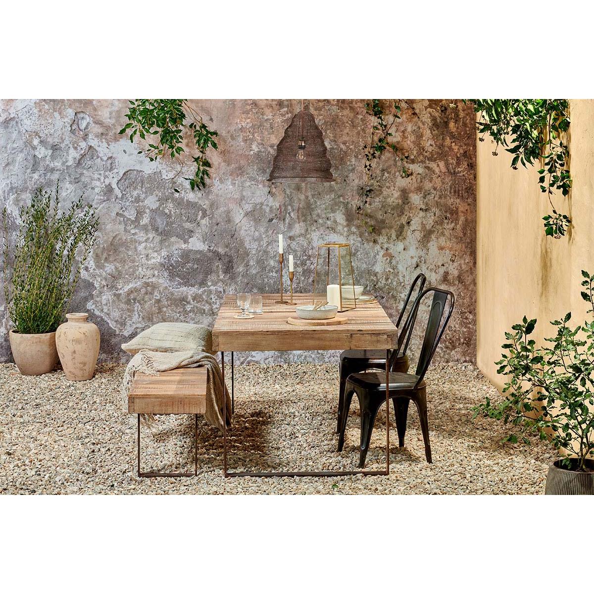 Dress an outside space, conservatory or terrace with our characterful Oso dining table. The reclaimed slat wood design has an attractive patina. Style with our Oso bench.