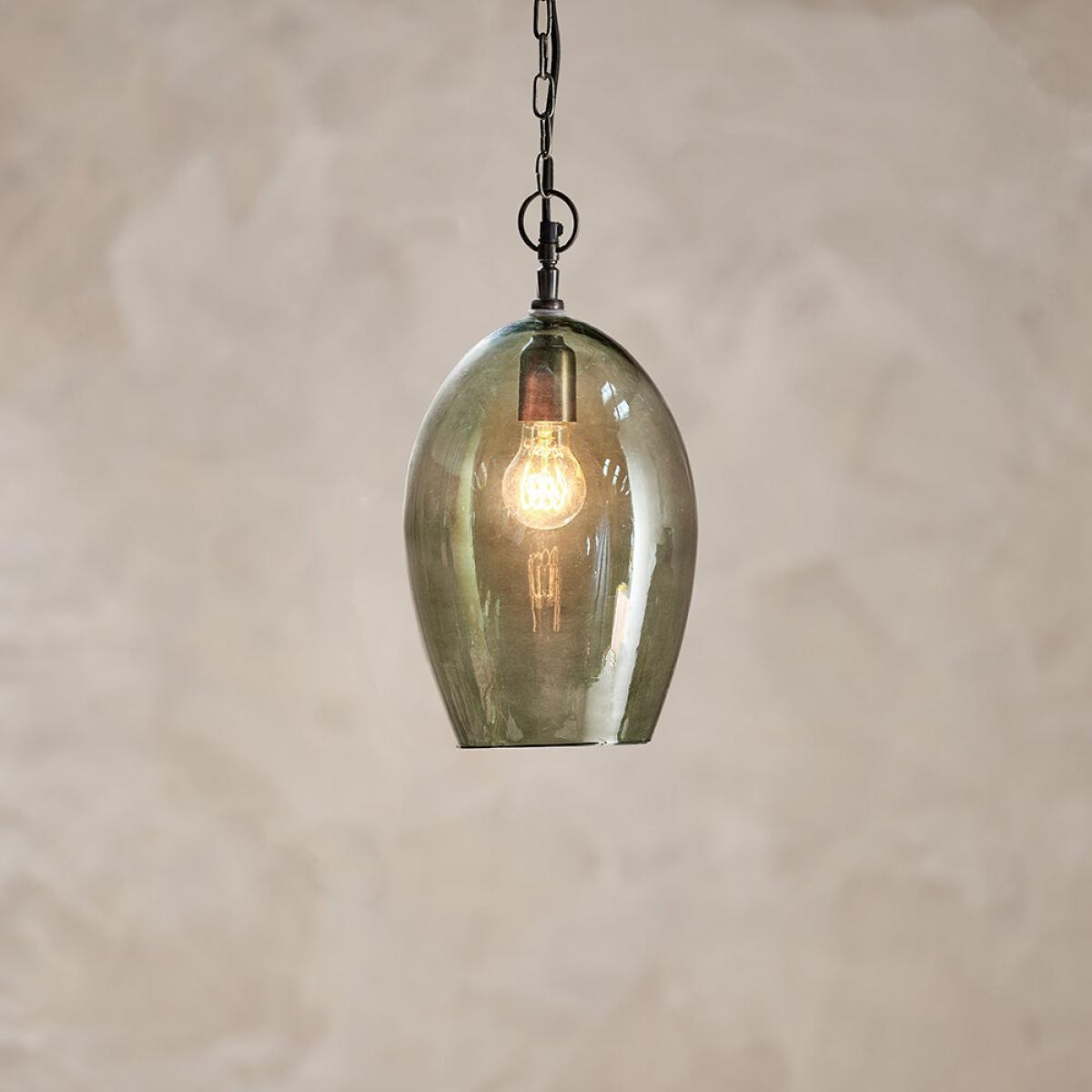 Lighten up your interior with this Otoro pendant from Nkuku. Handcrafted from recycled glass, it features an organic oval shape and is finished in a grey/green tone that will softly diffuse the light. Perfect for hanging above an entranceway, stairwell or living space, it can be paired with plenty more accessories available separately from Nkuku. Key features: * Material: recycled glass, iron * Dimensions: Ø31xH48cm * Cord length: 150cm * Bulb required: 1x E27 60W (not included) * Oval shape * Green/grey colour * Please note, due to the handmade nature each piece is unique