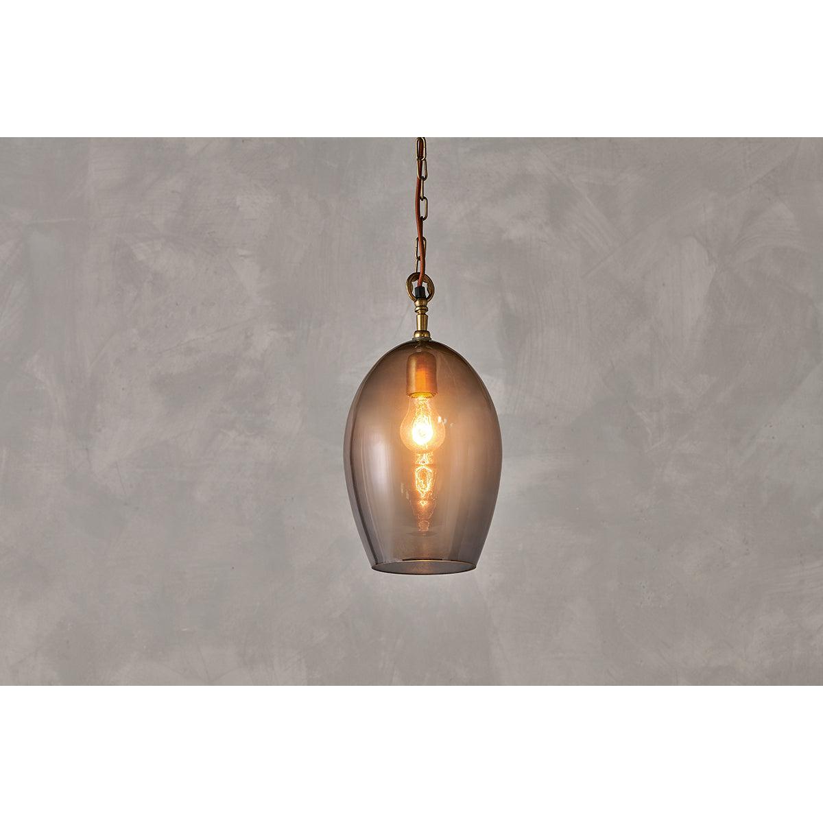 I love this small oval pendant because of its subtle elegance and eco-conscious design. The smoked recycled glass adds a warm, muted tone that works beautifully in contemporary or industrial interiors, adding a touch of understated sophistication. It pairs particularly well with pared-back schemes or natural textures like wood, concrete, or raw metals. Practical styling tips include hanging it in clusters for a layered look or using it as a statement piece above a dining table or kitchen island for a cosy, inviting atmosphere. Its understated shape and colour make it versatile enough to suit both minimalist and eclectic interiors effortlessly.