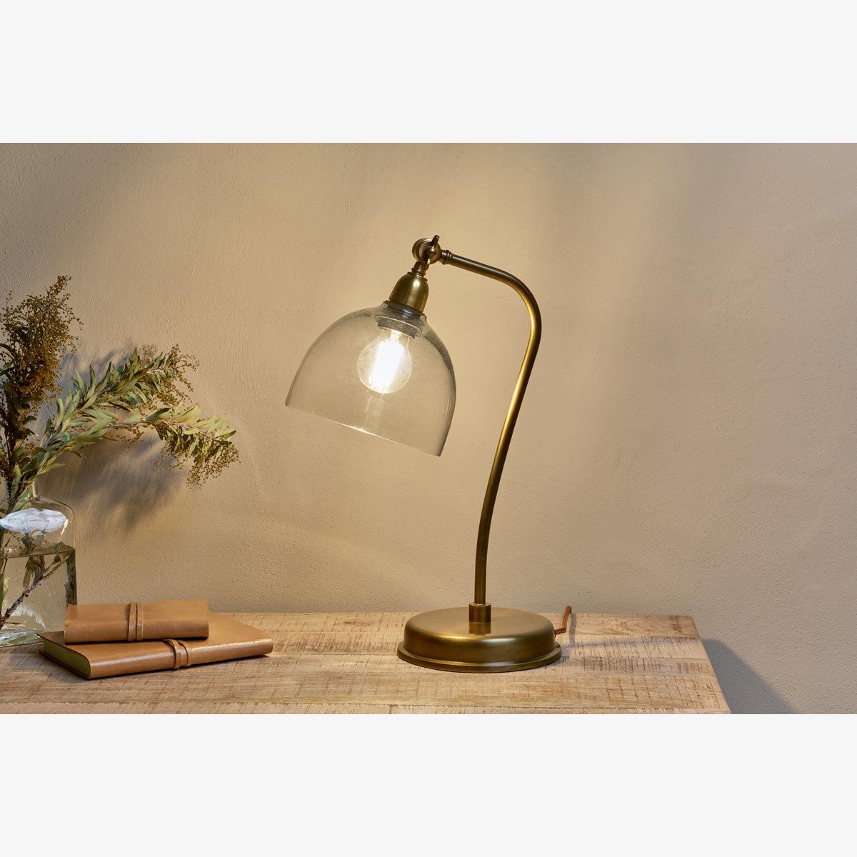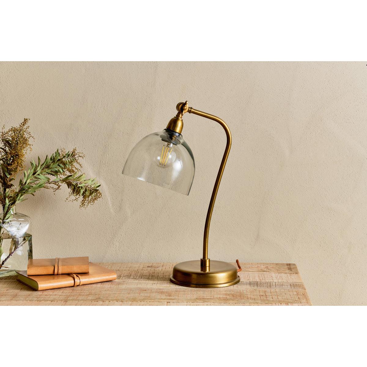 nkuku Purnia Glass & Metal Desk Lamp | Lamps And Shades | Antique Brass/Clear