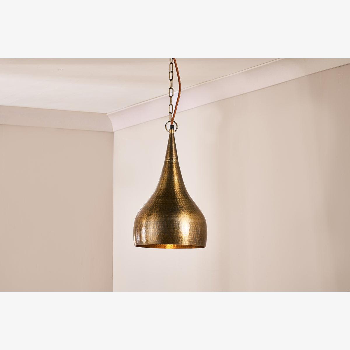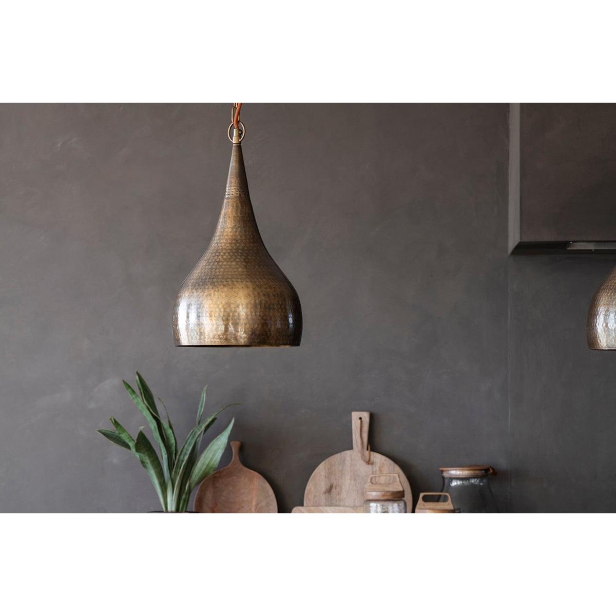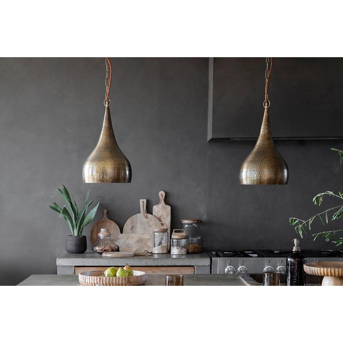 Nkuku Quinn Hammered Metal Pendant | Lights | Antique Brass | Small